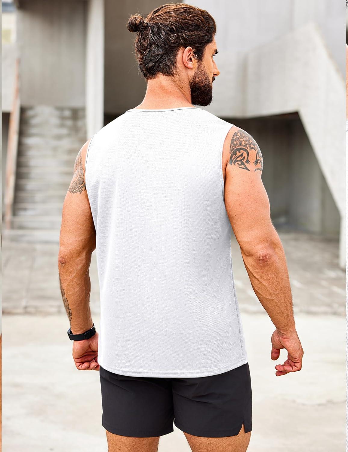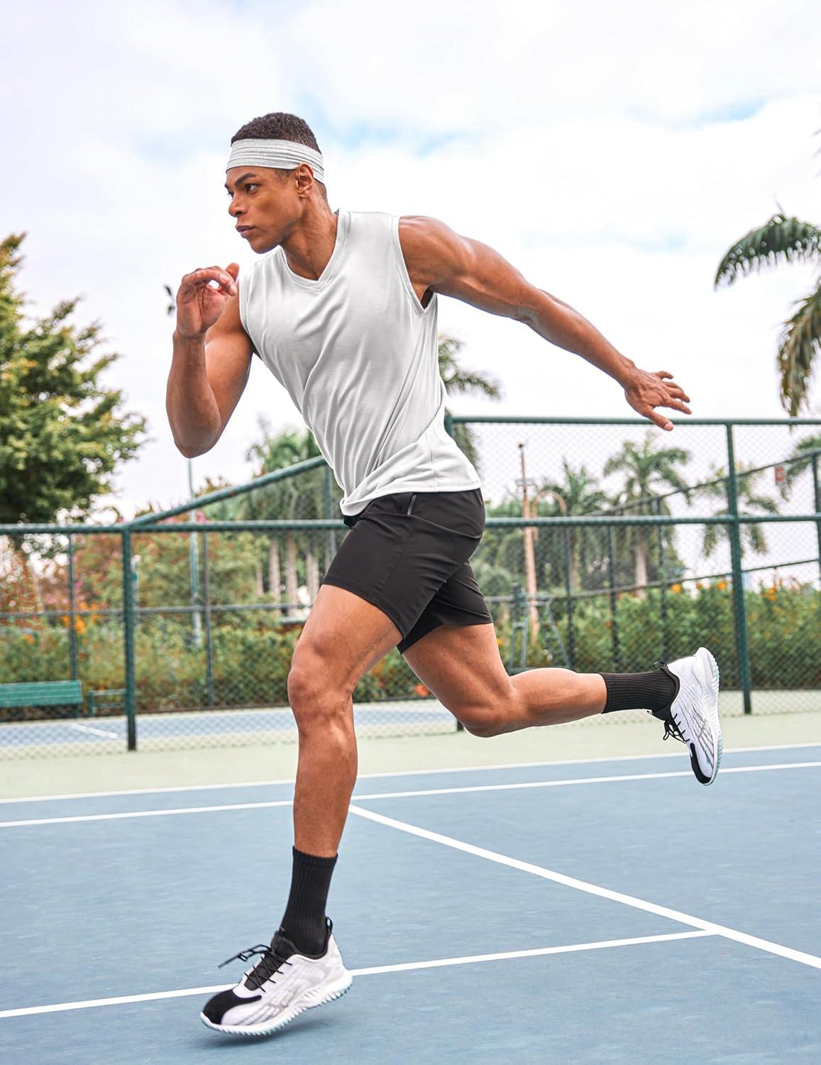COOFANDY Men’s 3 Pack Workout Tank Tops Gym Sleeveless Shirts V Neck Bodybuilding Muscle Tee Shirt(Black/White)