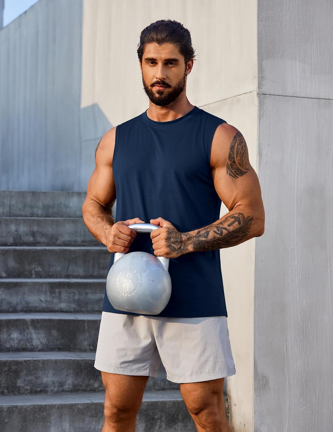 COOFANDY Men’s 3 Pack Workout Tank Tops Gym Sleeveless Shirts V Neck Bodybuilding Muscle Tee Shirt(Black/Navy/Medium Gray)