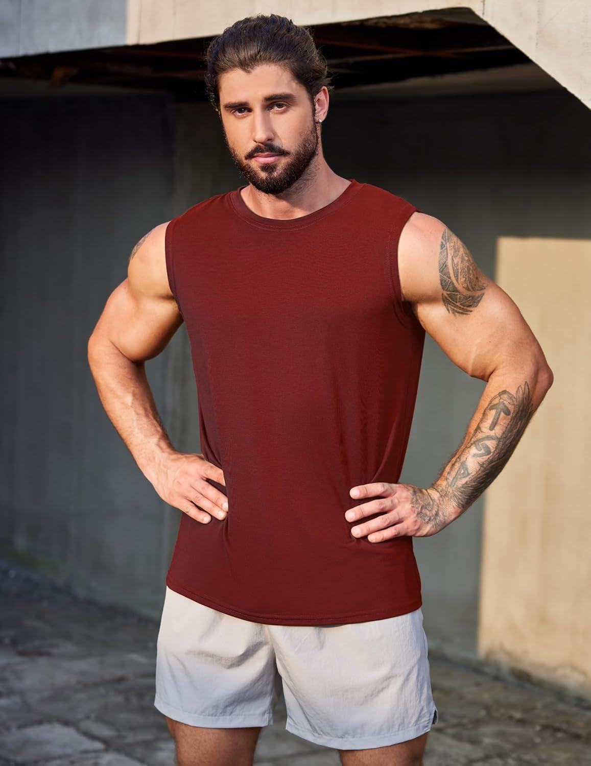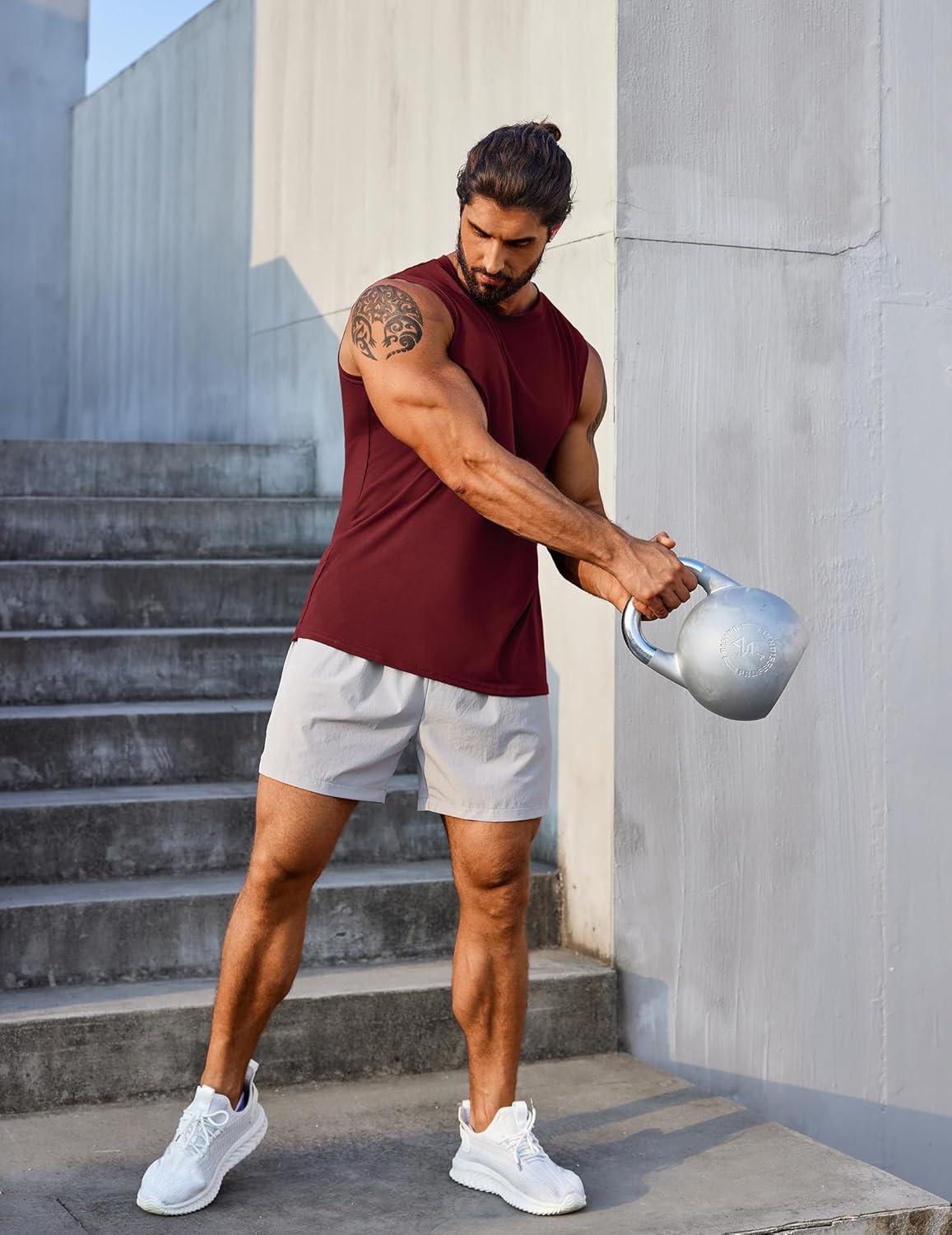COOFANDY Men’s 3 Pack Workout Tank Tops Gym Sleeveless Shirts V Neck Bodybuilding Muscle Tee Shirt(Black/Light Grey/Wine Red)