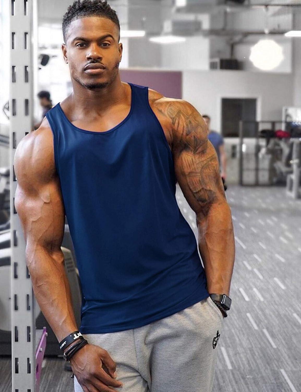 COOFANDY Men’s 3 Pack Workout Tank Tops Gym Sleeveless Shirts V Neck Bodybuilding Muscle Tee Shirt(Army Green/Navy Blue/Blue)