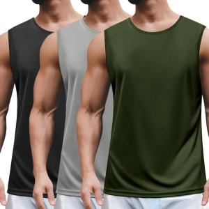 COOFANDY Men’s 3 Pack Workout Tank Tops Gym Sleeveless Shirts V Neck Bodybuilding Muscle Tee Shirt(Black/Light Grey/Army Green)