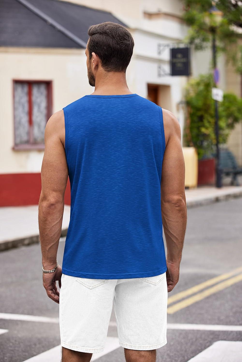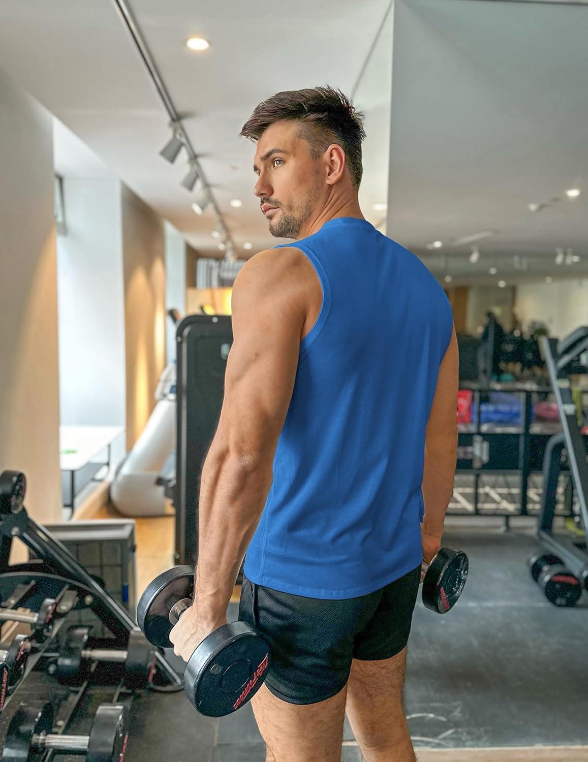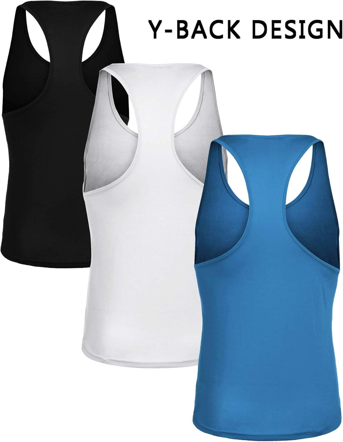 COOFANDY Men’s 3 Pack Workout Tank Tops Gym Sleeveless Shirts V Neck Bodybuilding Muscle Tee Shirt(Black/White/Blue)