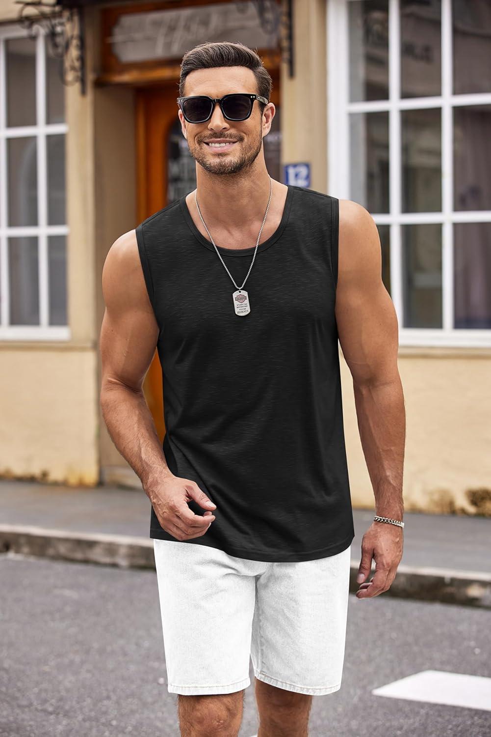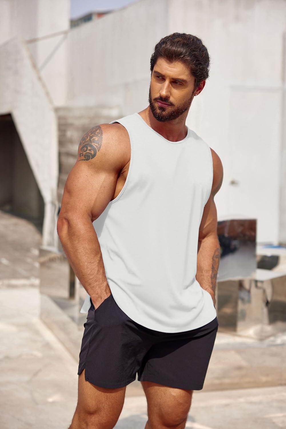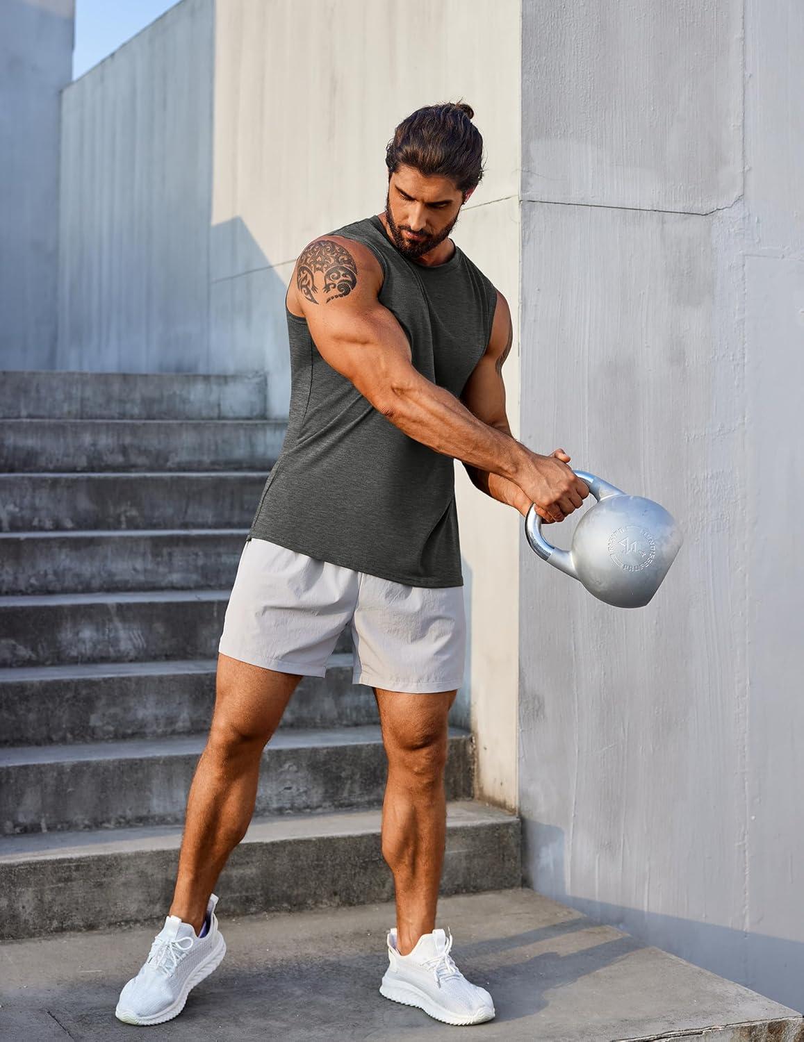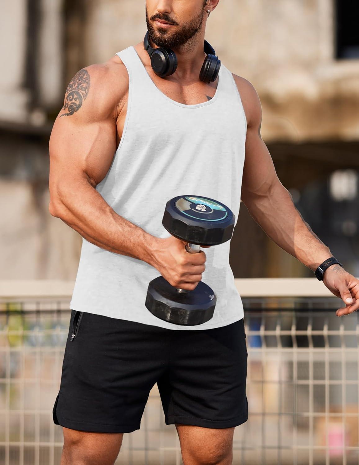 COOFANDY Men’s 3 Pack Workout Tank Tops Gym Sleeveless Shirts V Neck Bodybuilding Muscle Tee Shirt(Black/White/Dark Grey)