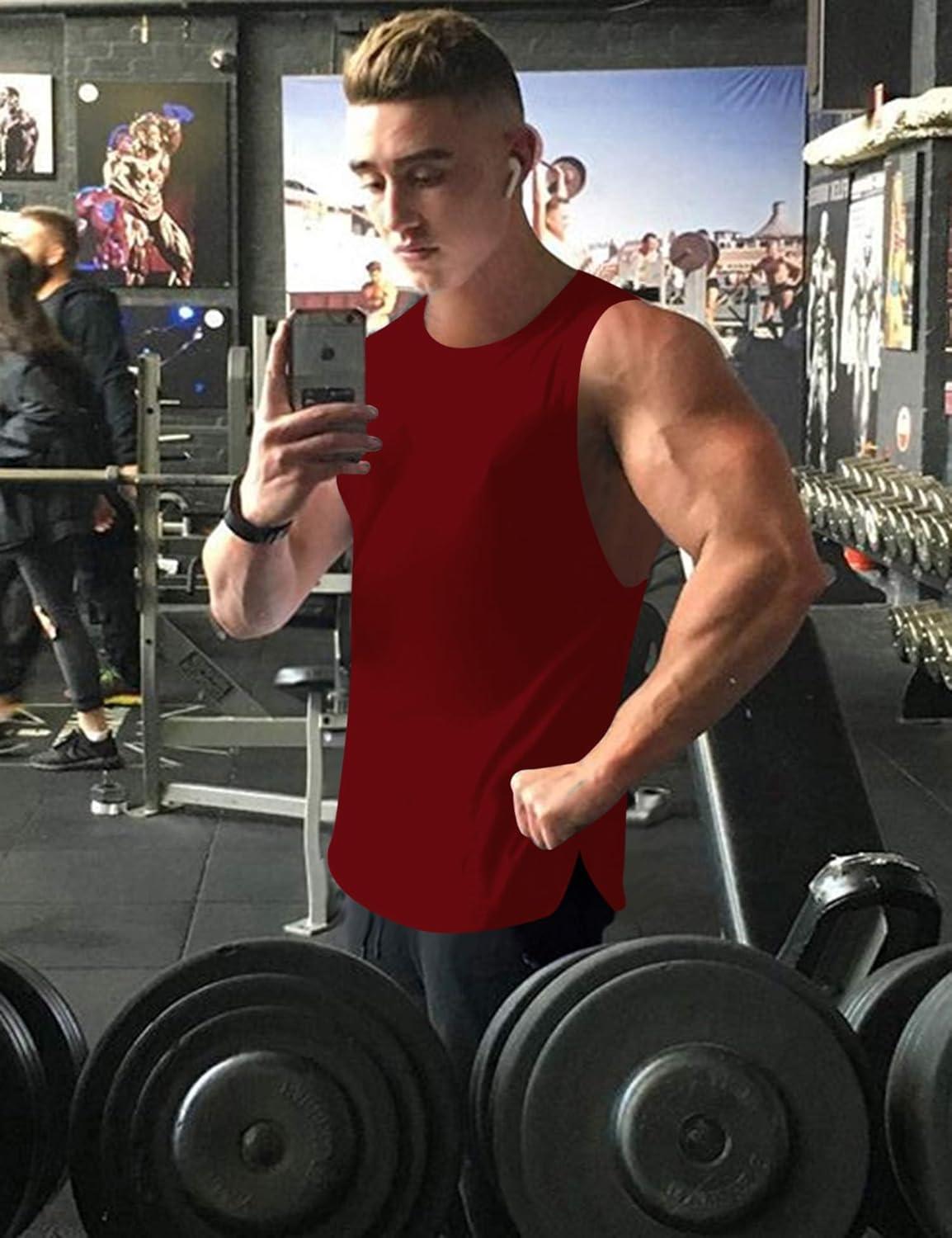 COOFANDY Men’s 3 Pack Workout Tank Tops Gym Sleeveless Shirts V Neck Bodybuilding Muscle Tee Shirt(Black/Wine Red/White)