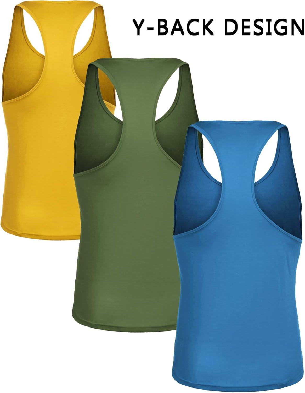 COOFANDY Men’s 3 Pack Workout Tank Tops Gym Sleeveless Shirts V Neck Bodybuilding Muscle Tee Shirt(Blue/Yellow/Army Green)