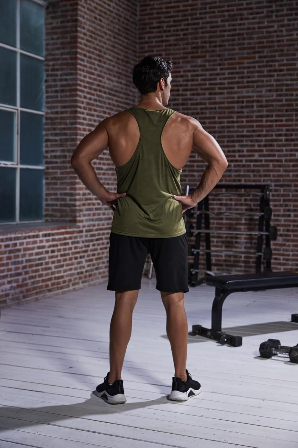 COOFANDY Men’s 3 Pack Workout Tank Tops Gym Sleeveless Shirts V Neck Bodybuilding Muscle Tee Shirt(Navyarmy Green)