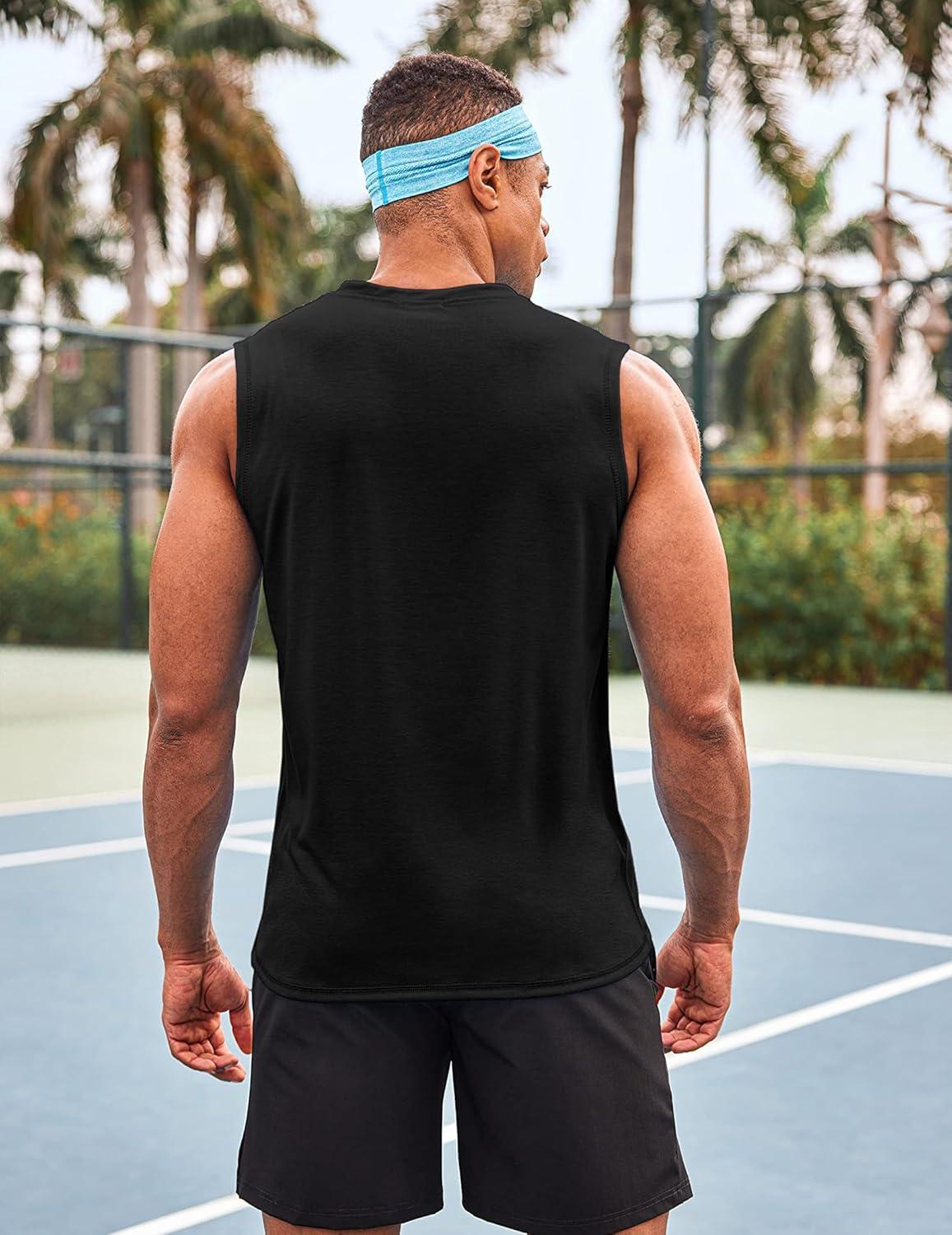 COOFANDY Men’s 3 Pack Workout Tank Tops Gym Sleeveless Shirts V Neck Bodybuilding Muscle Tee Shirt(Blackwhite)