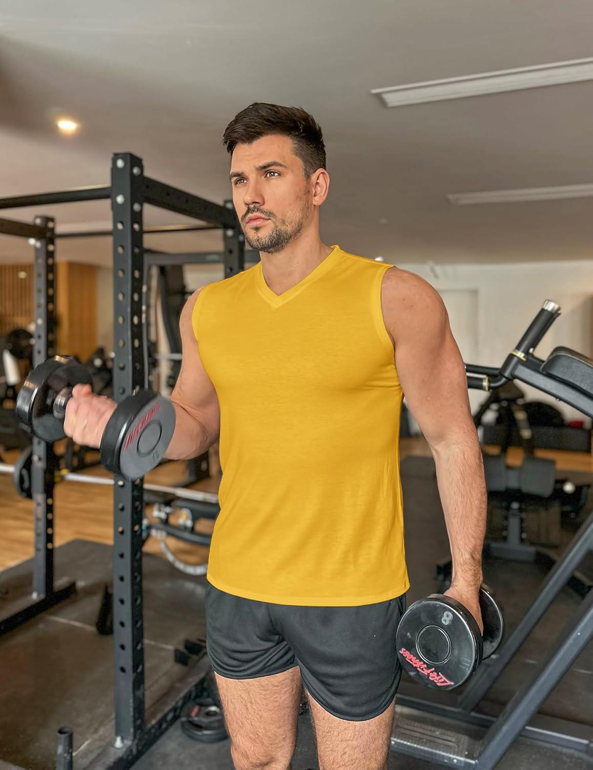 COOFANDY Men’s 3 Pack Workout Tank Tops Gym Sleeveless Shirts V Neck Bodybuilding Muscle Tee Shirt(Light Blue/Light Grey/Yellow)