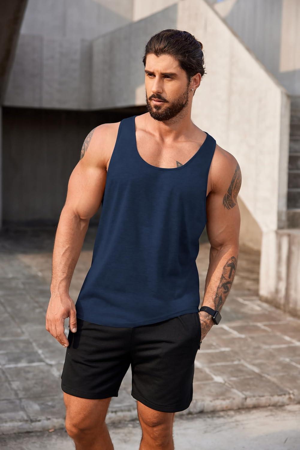 COOFANDY Men’s 3 Pack Workout Tank Tops Gym Sleeveless Shirts V Neck Bodybuilding Muscle Tee Shirt(Dark Grey Deep Blue)
