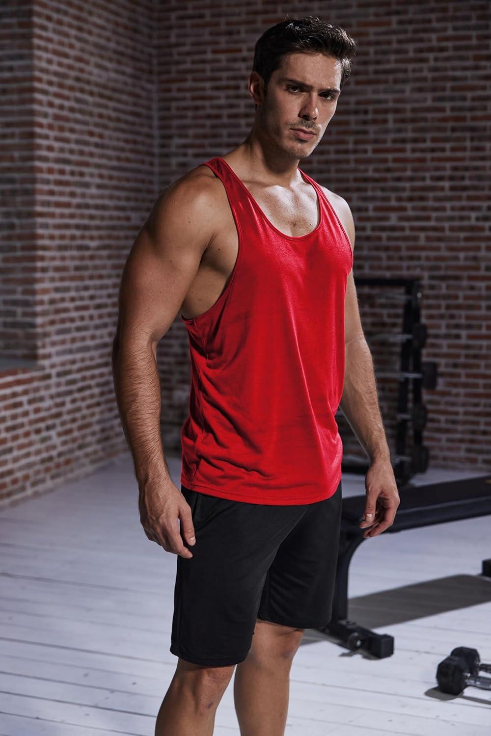 COOFANDY Men’s 3 Pack Workout Tank Tops Gym Sleeveless Shirts V Neck Bodybuilding Muscle Tee Shirt(Dark Grey/Red/Black)