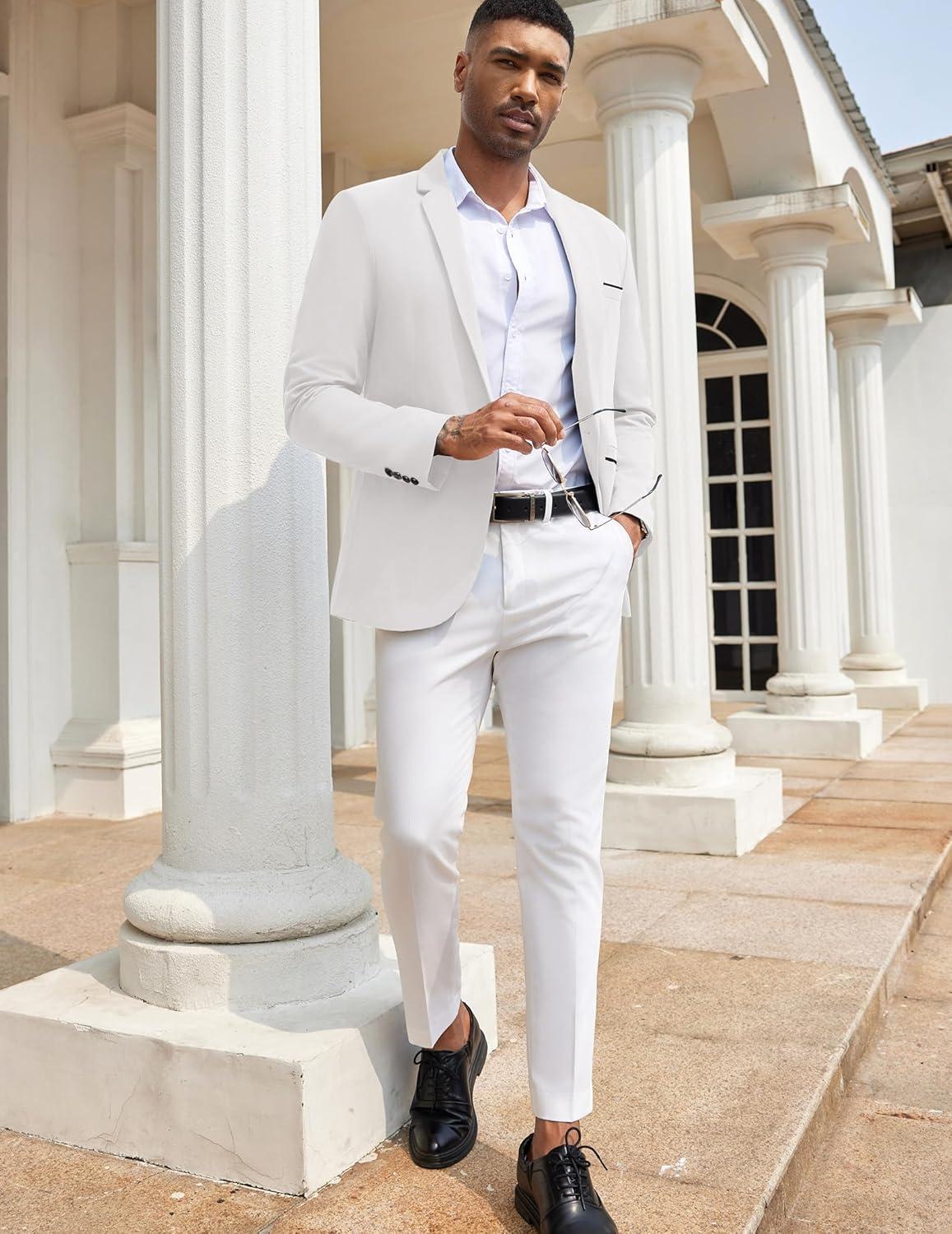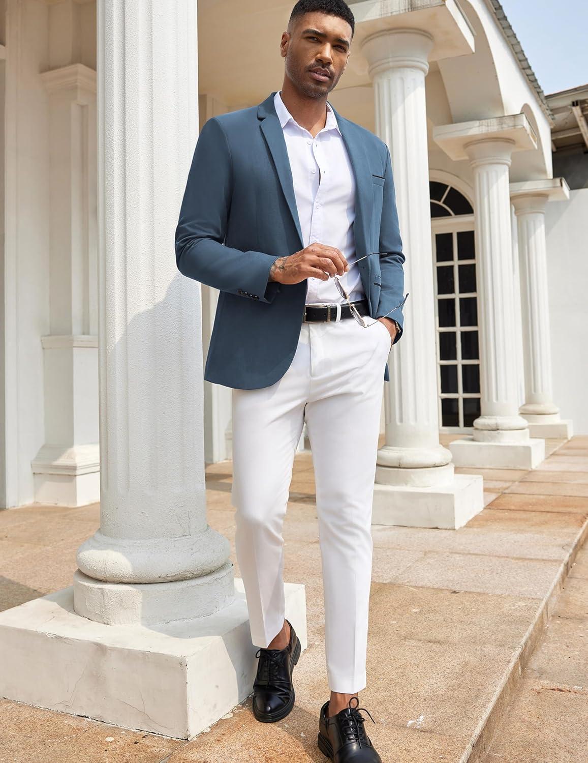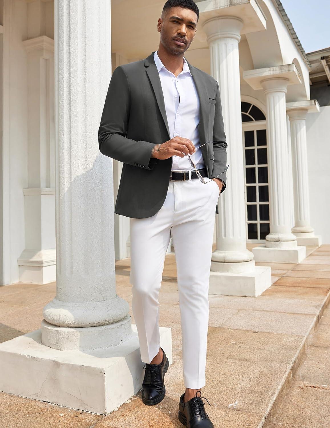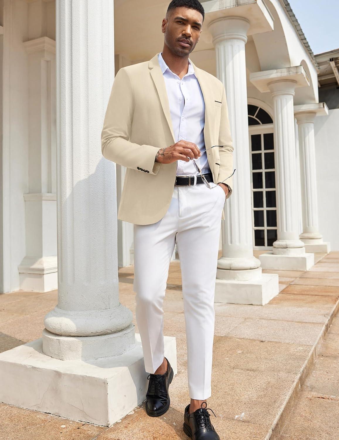COOFANDY Men’s Casual Blazers Sport Coats Slim Fit Cotton Sport Jackets 1 Button Lightweight Suit Jackets(B- White)