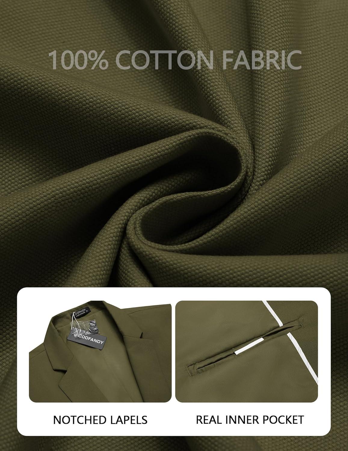 COOFANDY Men’s Casual Blazers Sport Coats Slim Fit Cotton Sport Jackets 1 Button Lightweight Suit Jackets(B- Army Green)
