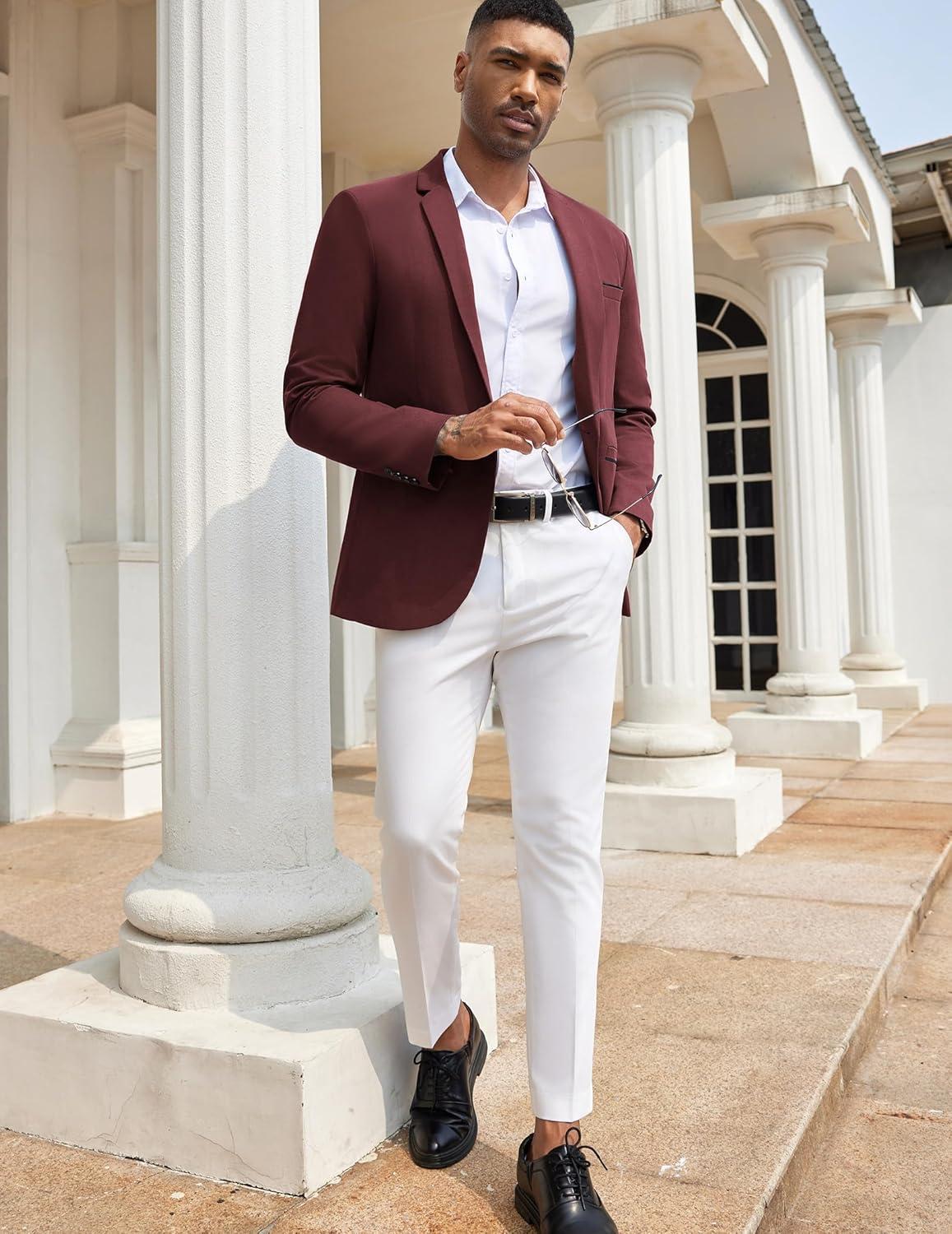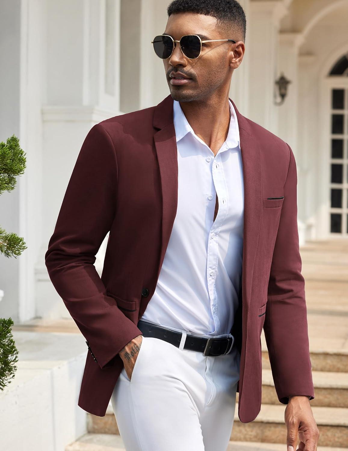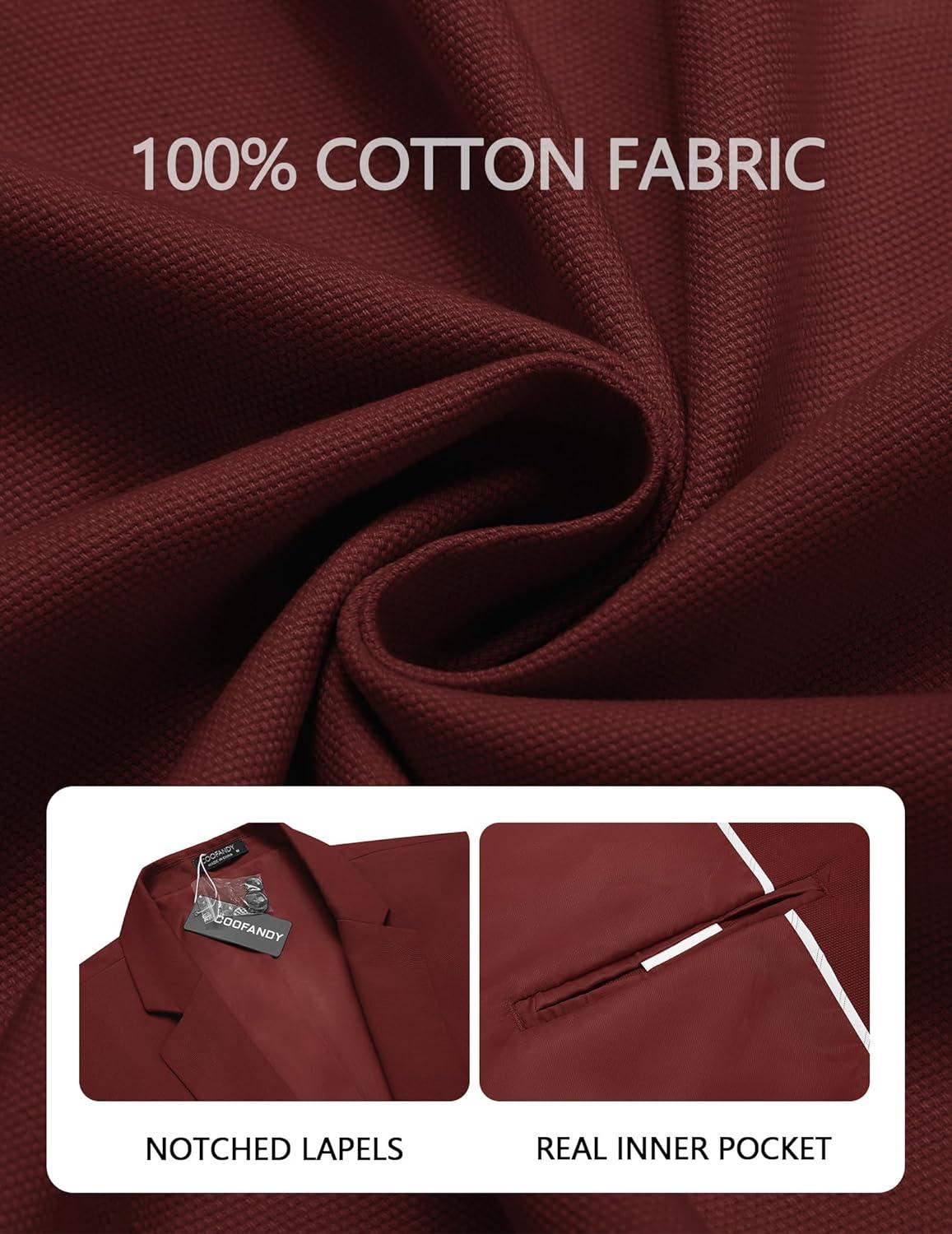 COOFANDY Men’s Casual Blazers Sport Coats Slim Fit Cotton Sport Jackets 1 Button Lightweight Suit Jackets(B- Wine Red)