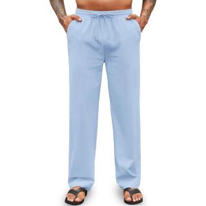 • COOFANDY Men’s Cotton Linen Pants Casual Harem Pants Elastic Waist Beach Boho Yoga Trousers(Blue)