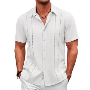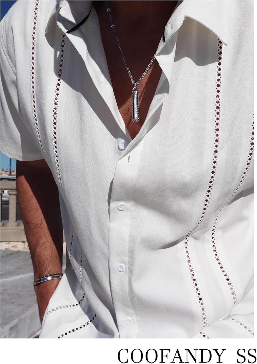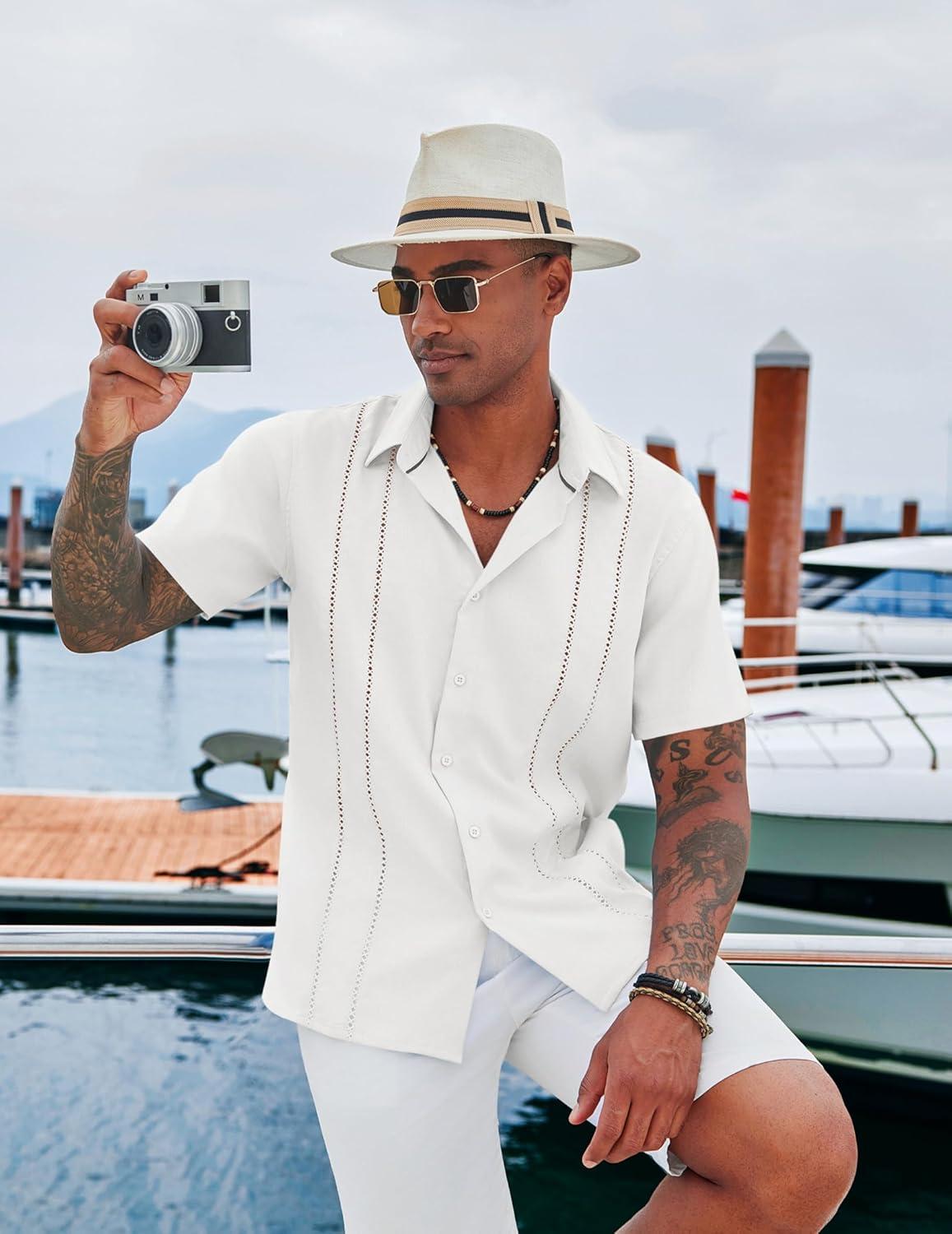 COOFANDY Men’s Cuban Guayabera Shirt Casual Short Sleeve Button Down Shirts Summer Beach Shirts(A-white)