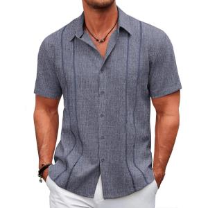 COOFANDY Men’s Cuban Guayabera Shirt Casual Short Sleeve Button Down Shirts Summer Beach Shirts(Indigo)