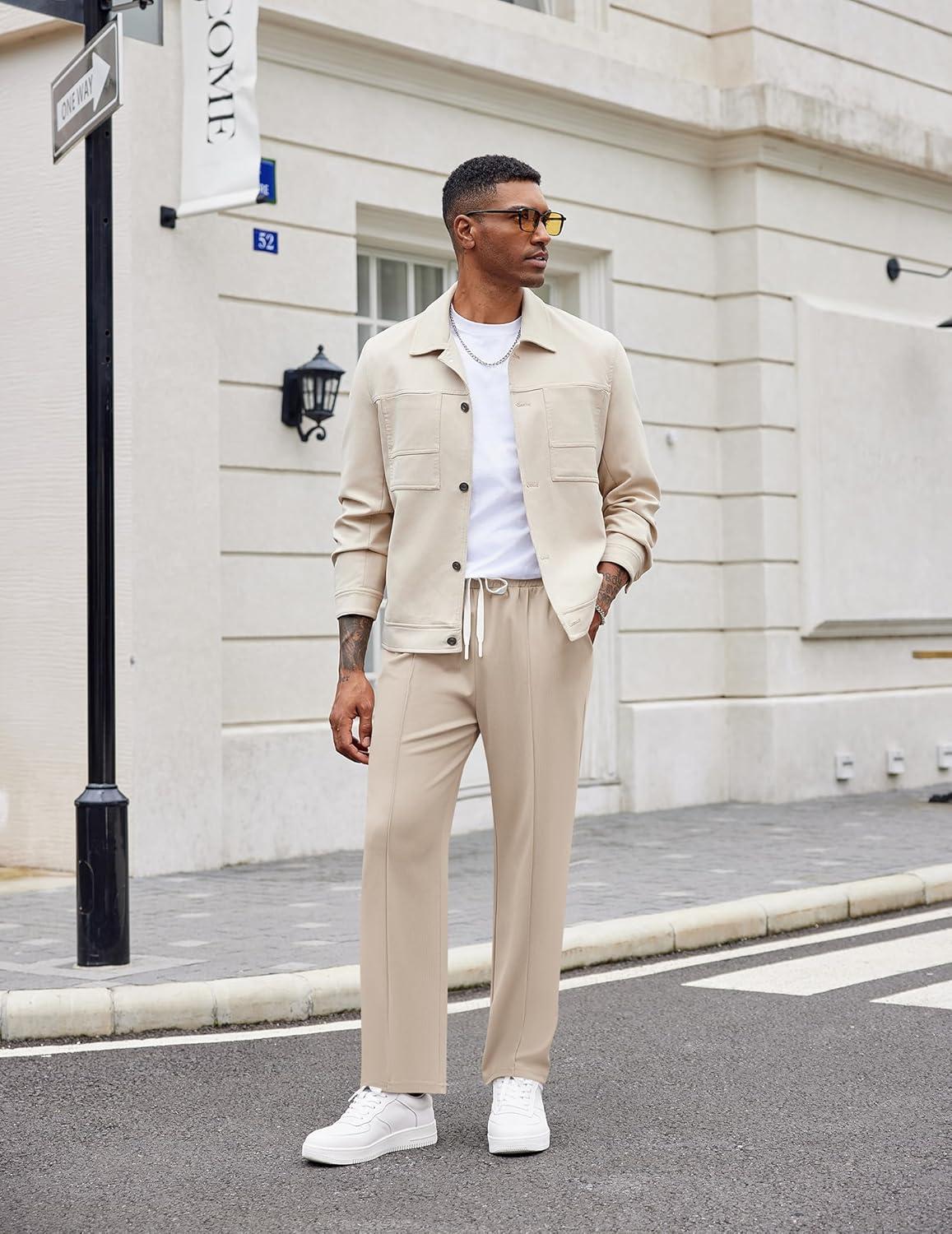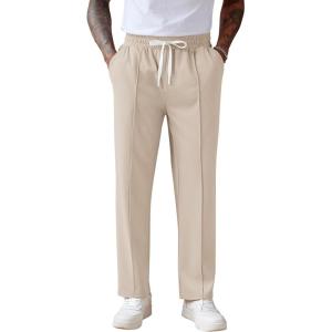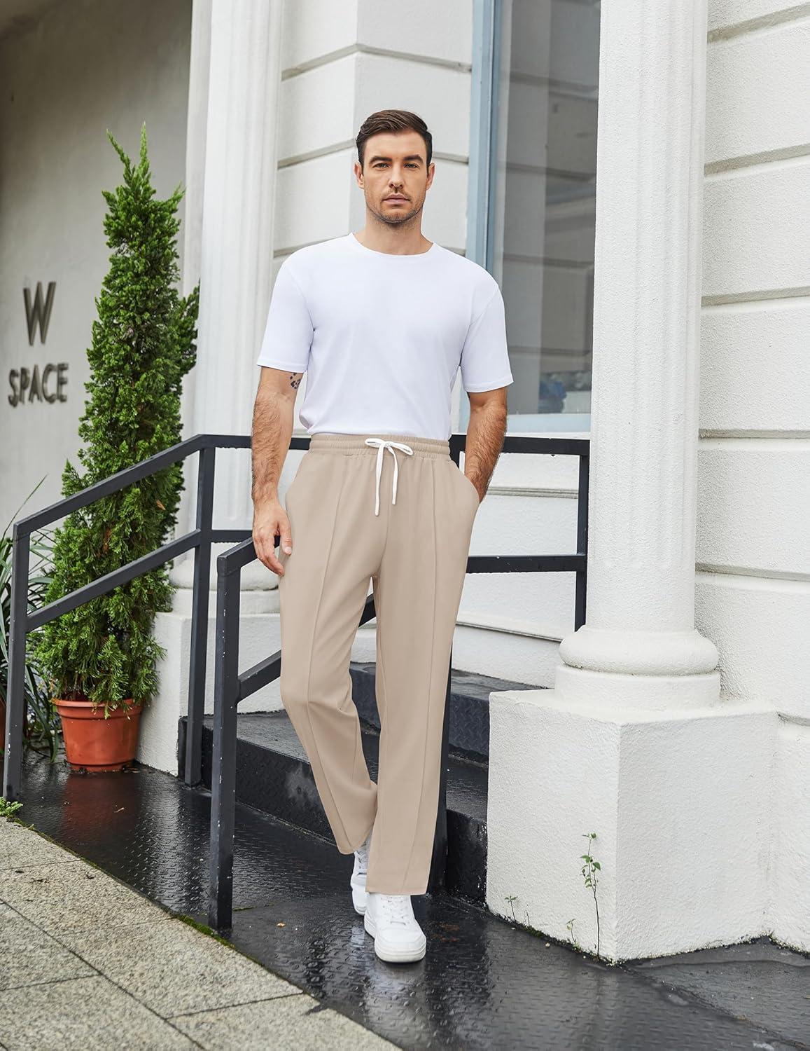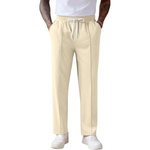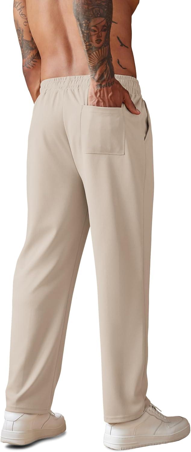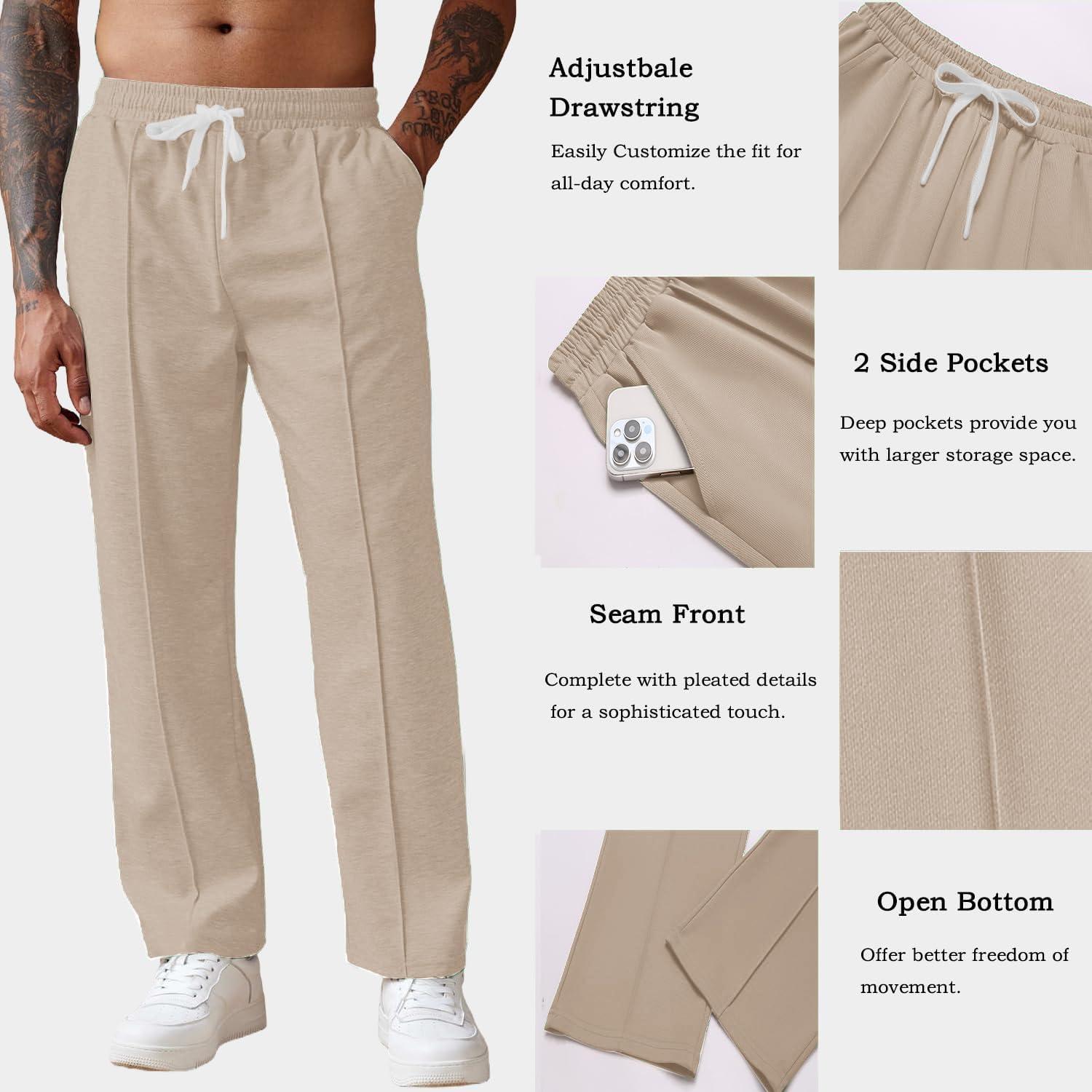 COOFANDY Men’s Knit Sweatpants Lightweight Open Bottom Casual Pants Drawstring Jogger Yoga Pants with Pockets(Beige)