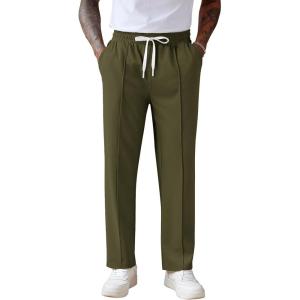 COOFANDY Men’s Knit Sweatpants Lightweight Open Bottom Casual Pants Drawstring Jogger Yoga Pants with Pockets(Army Green)