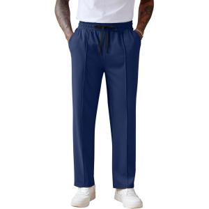COOFANDY Men’s Linen Capri Pants Casual Lightweight 3/4 Baggy Pants Drawstring Elastic Waist Beach Yoga Pants with Pockets(Navy Blue)