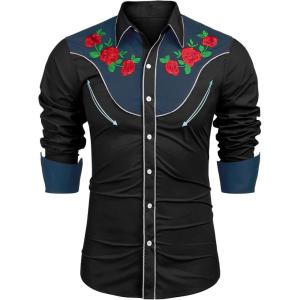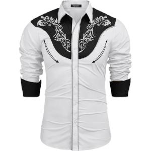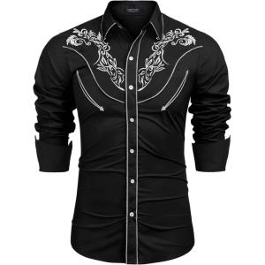 COOFANDY Men’s Western Cowboy Shirts Long Sleeve Cotton Casual Button Down Work Shirt with Pockets(01-black)