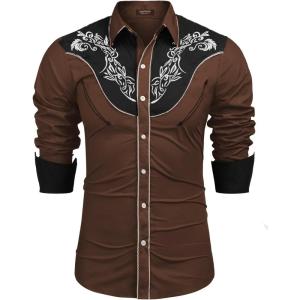 COOFANDY Men’s Western Cowboy Shirts Long Sleeve Cotton Casual Button Down Work Shirt with Pockets(Brown)