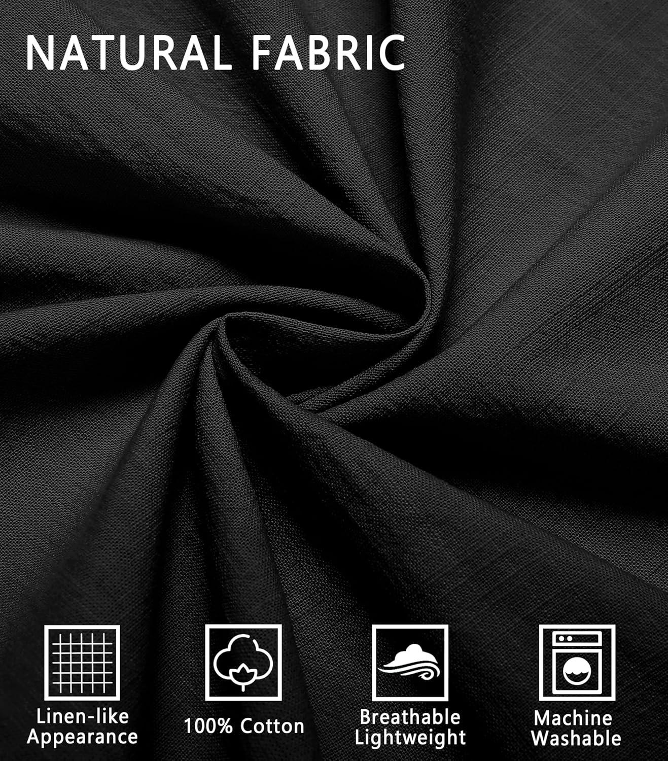 COOFANDY Mens Short Sleeve Button Down Shirts 100% Cotton Beach Style Textured Shirts(Black)