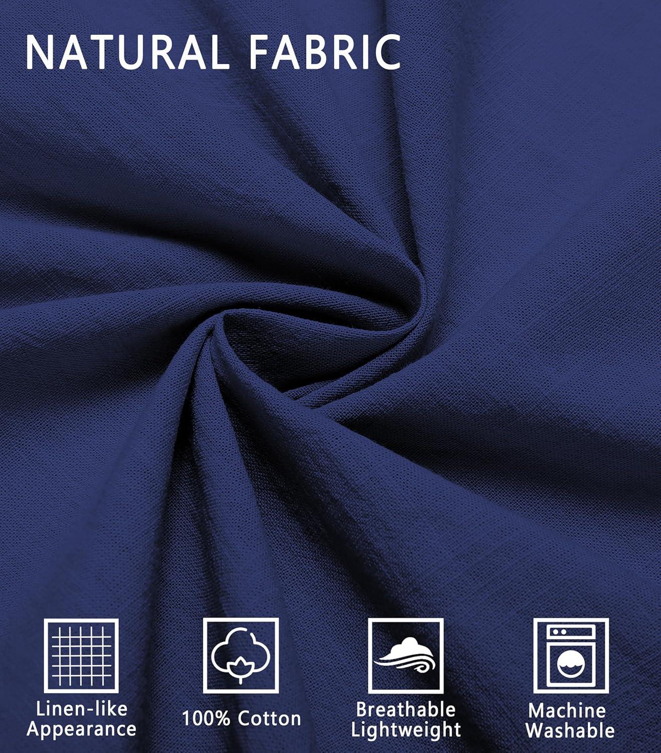 COOFANDY Mens Short Sleeve Button Down Shirts 100% Cotton Beach Style Textured Shirts(Navy)