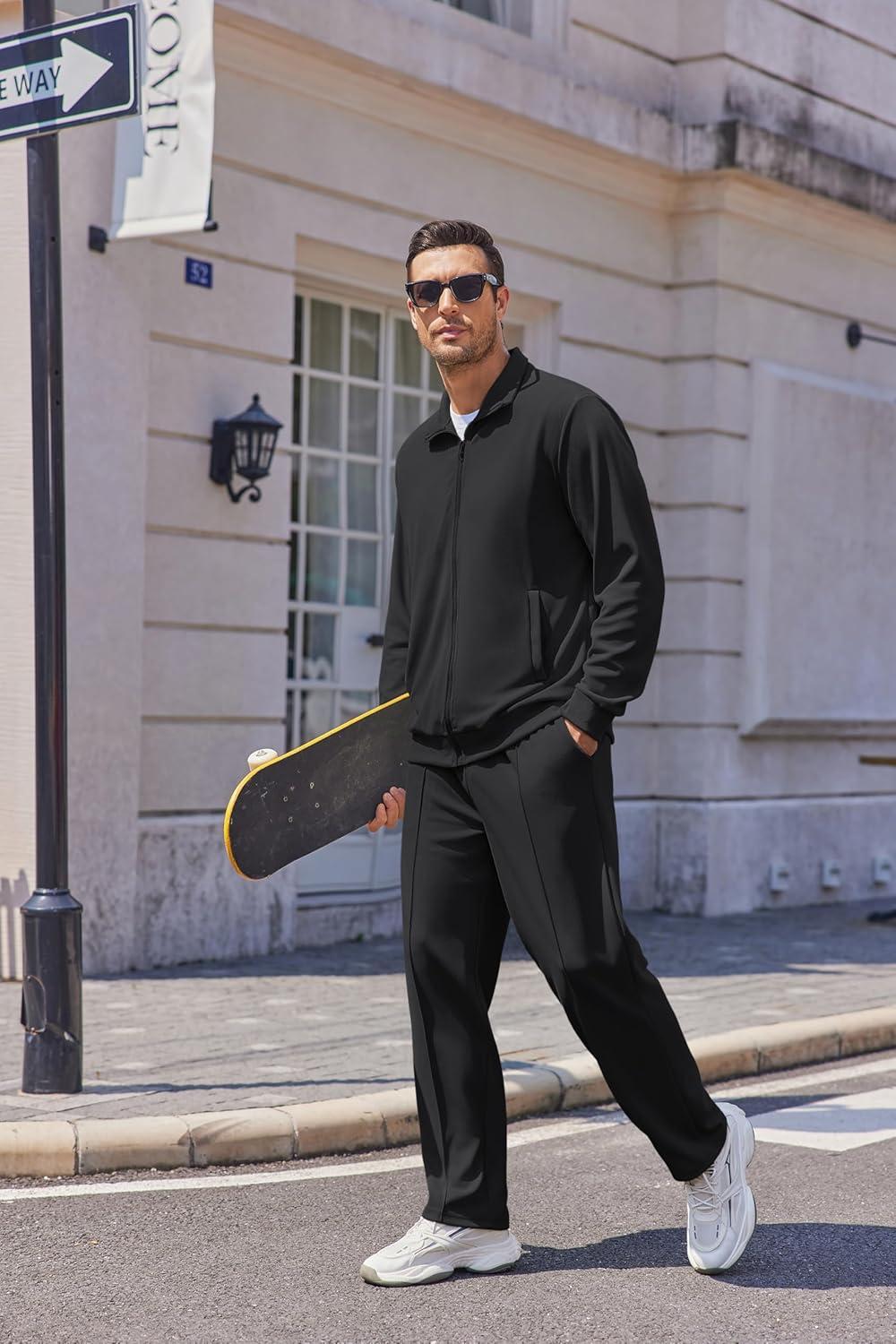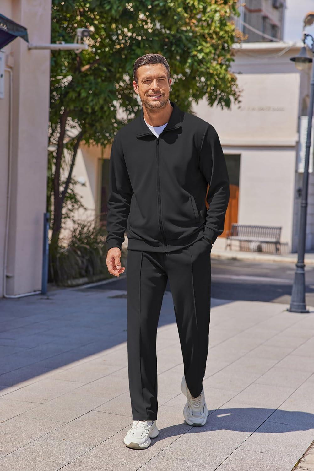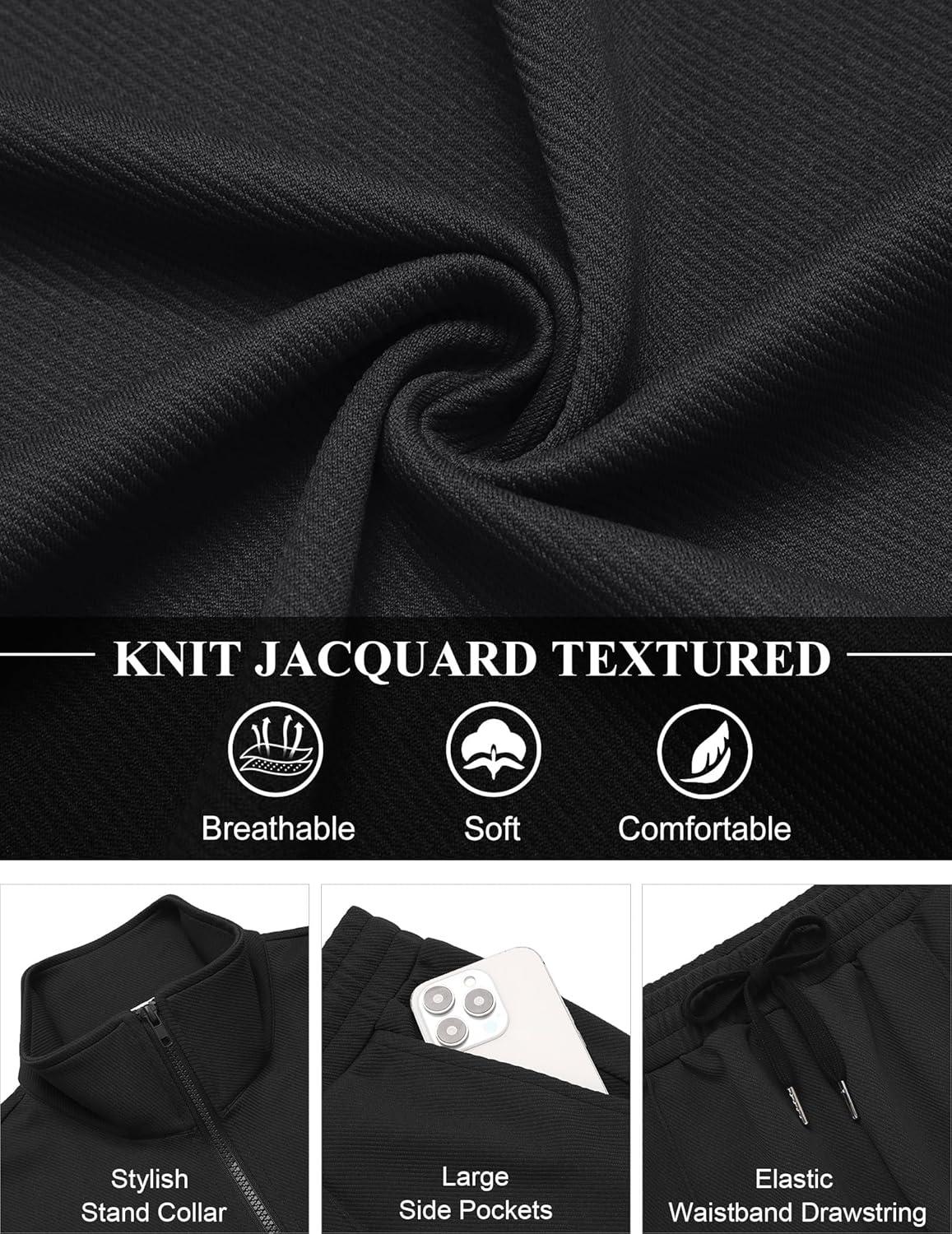 • COOFANDY Men’s Casual Sweatsuit 2 Piece Athletic Full Zip Tracksuit Jacquard Jogging Set Fashion Jackets And Pants Outfit(Black)