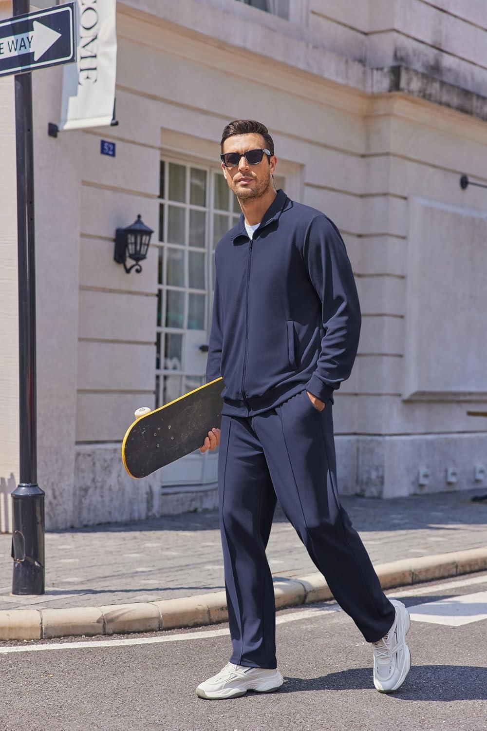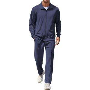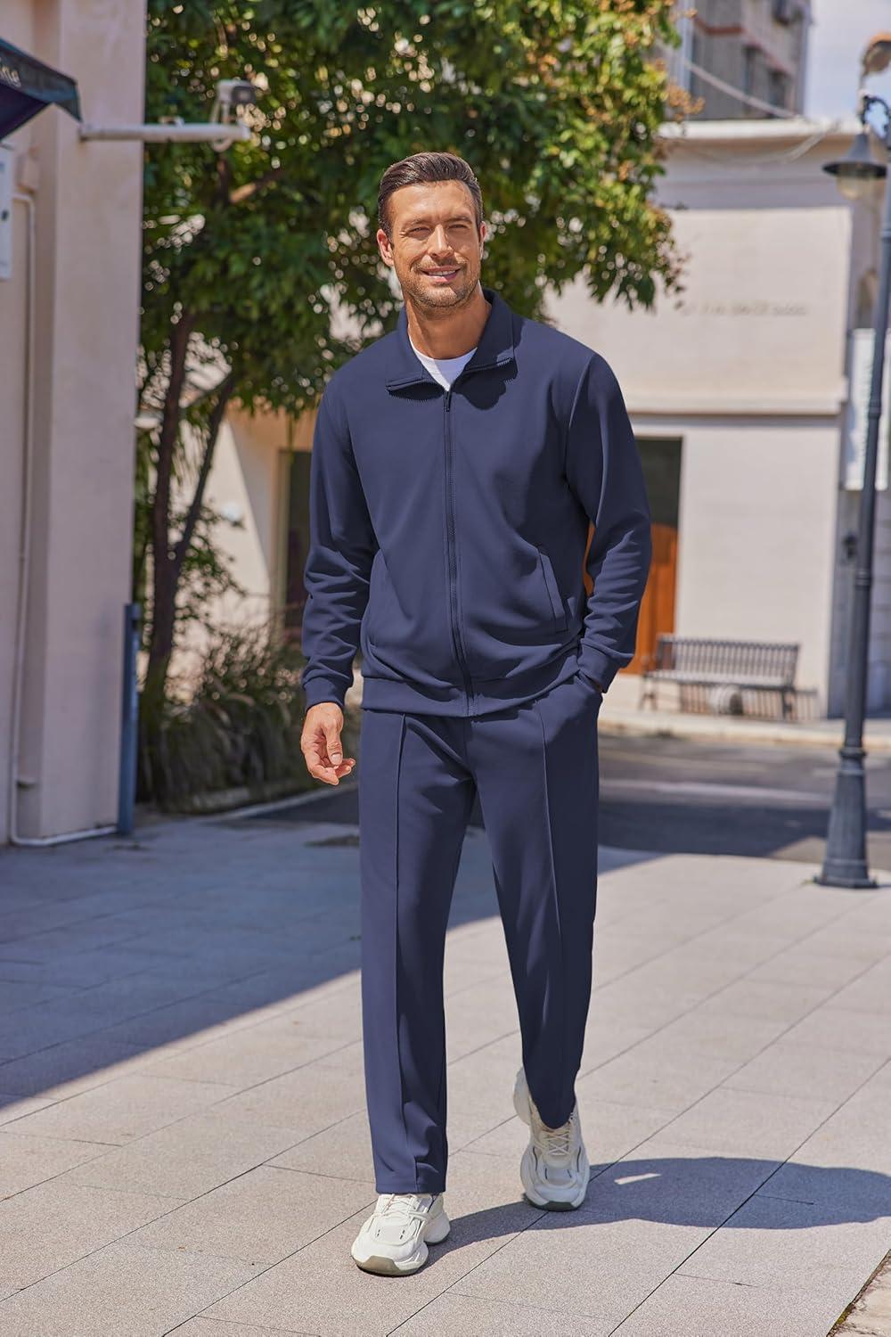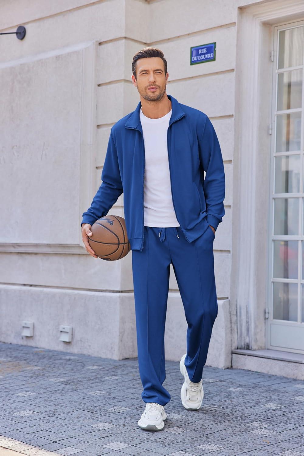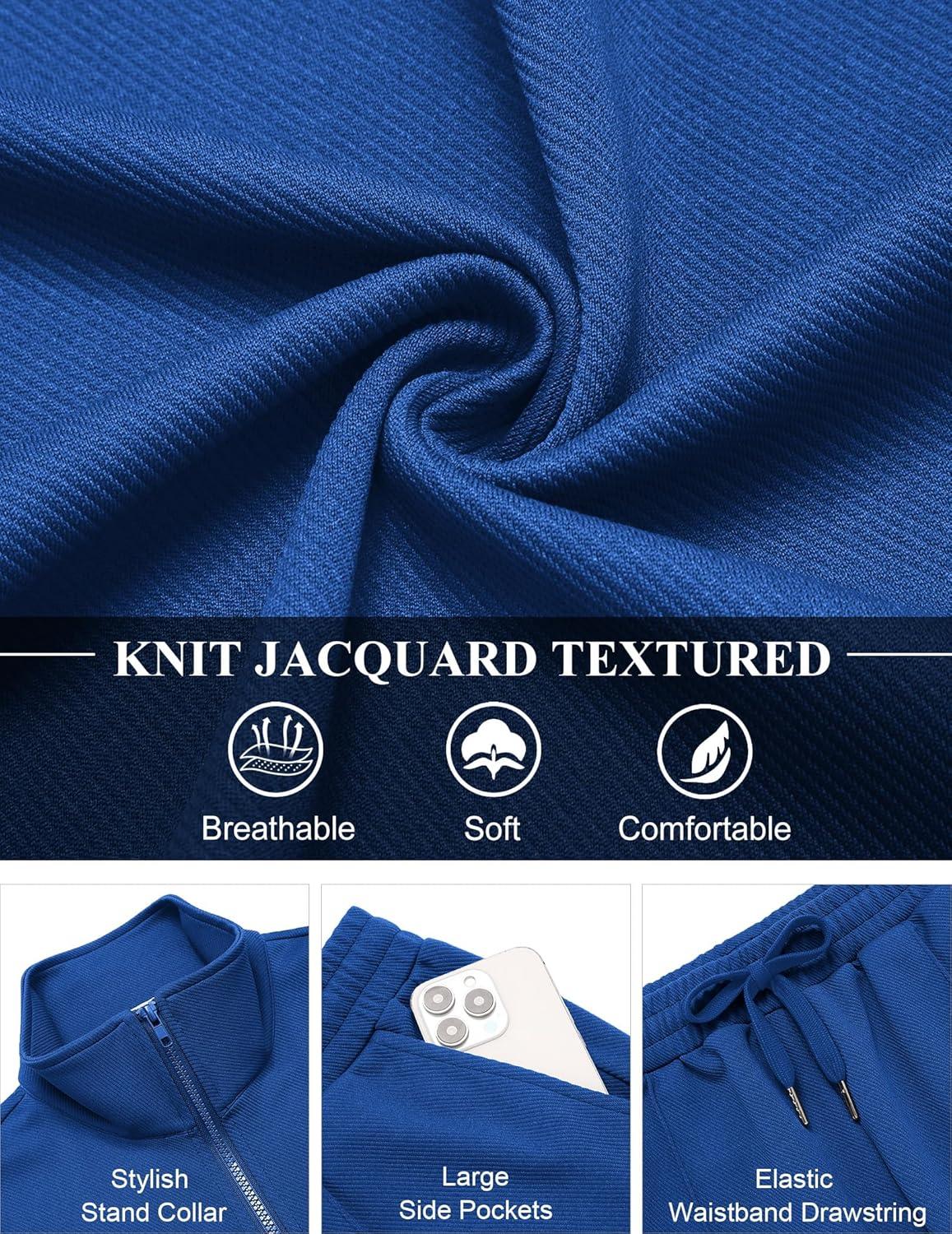 • COOFANDY Men’s Casual Sweatsuit 2 Piece Athletic Full Zip Tracksuit Jacquard Jogging Set Fashion Jackets And Pants Outfit(Blue)