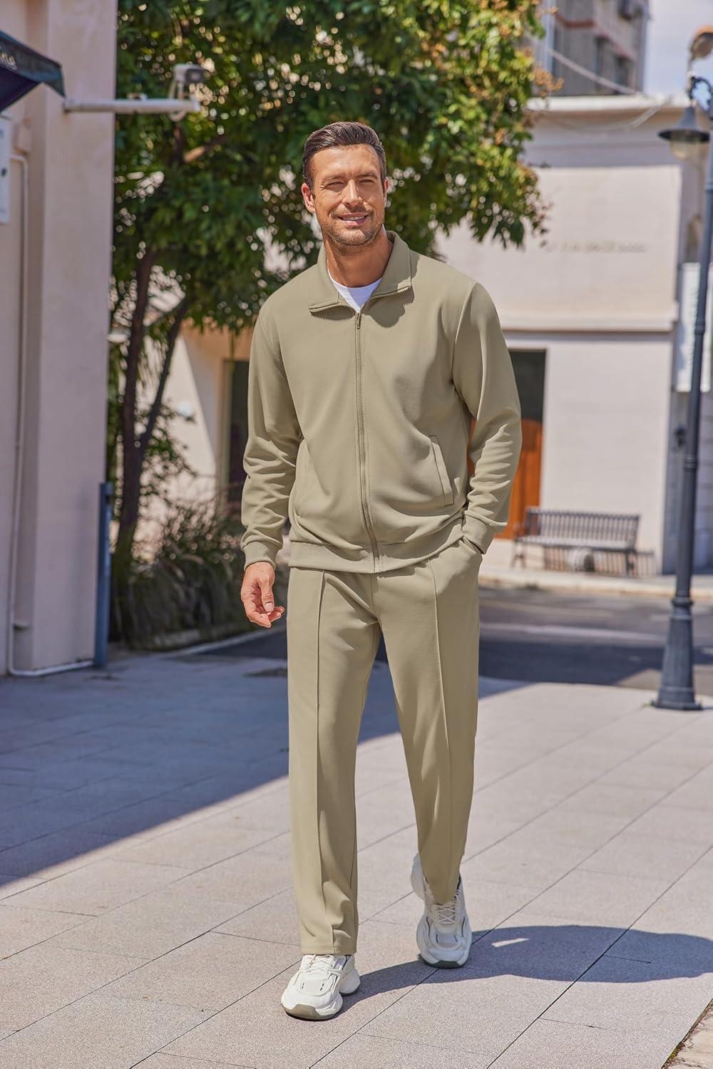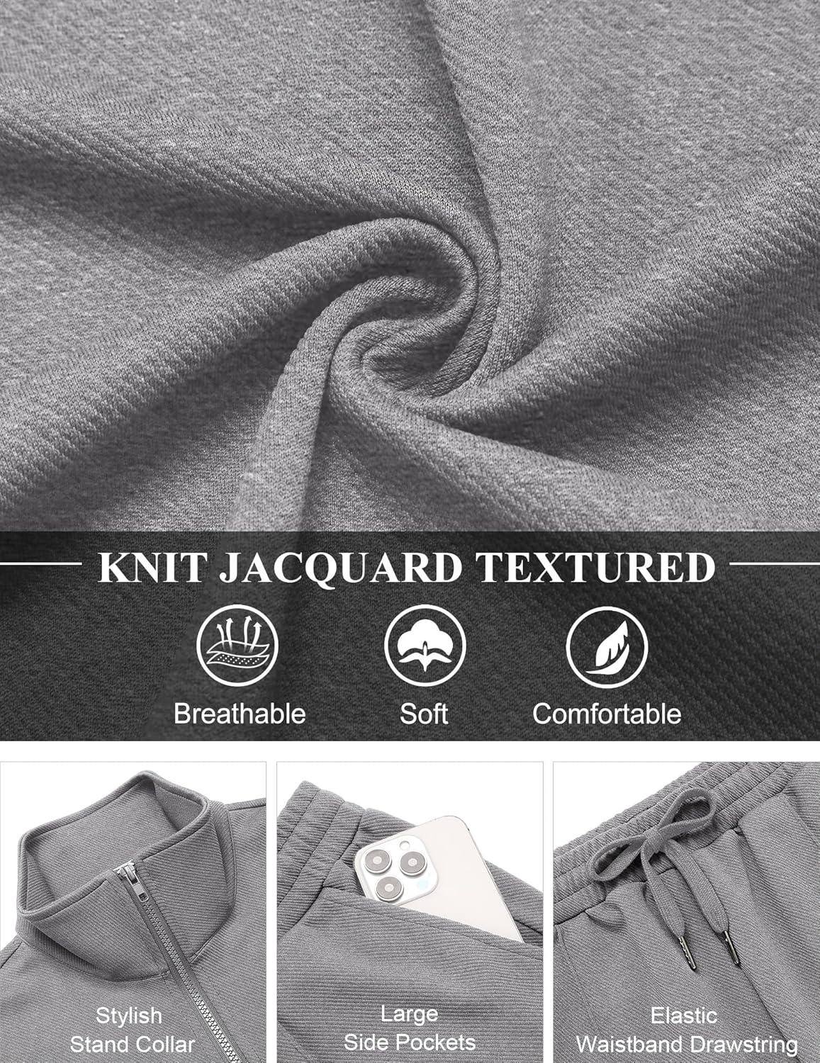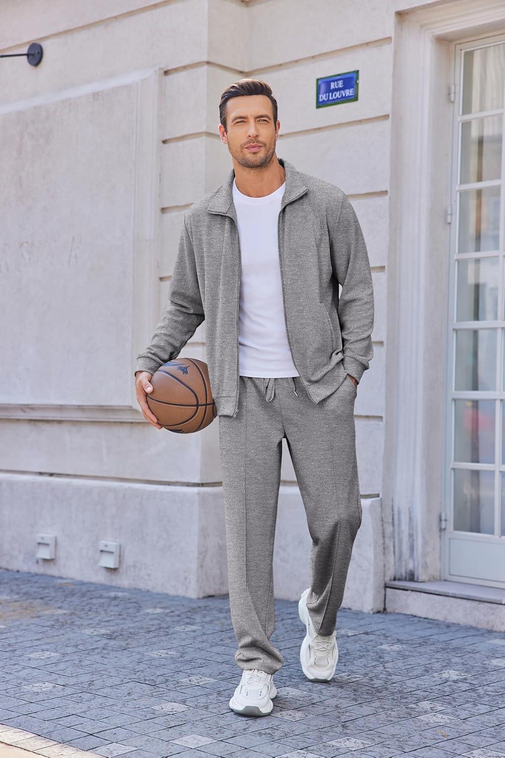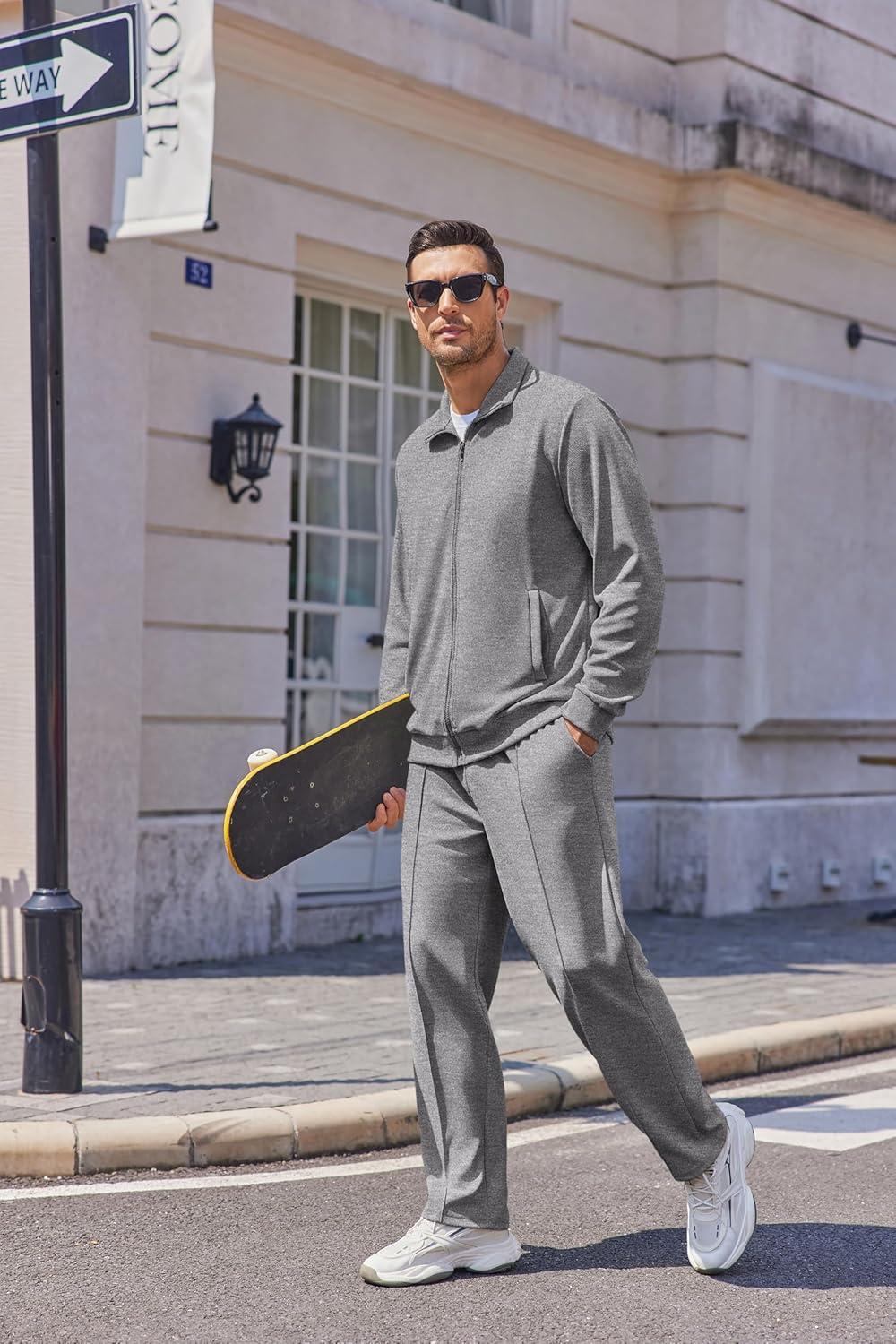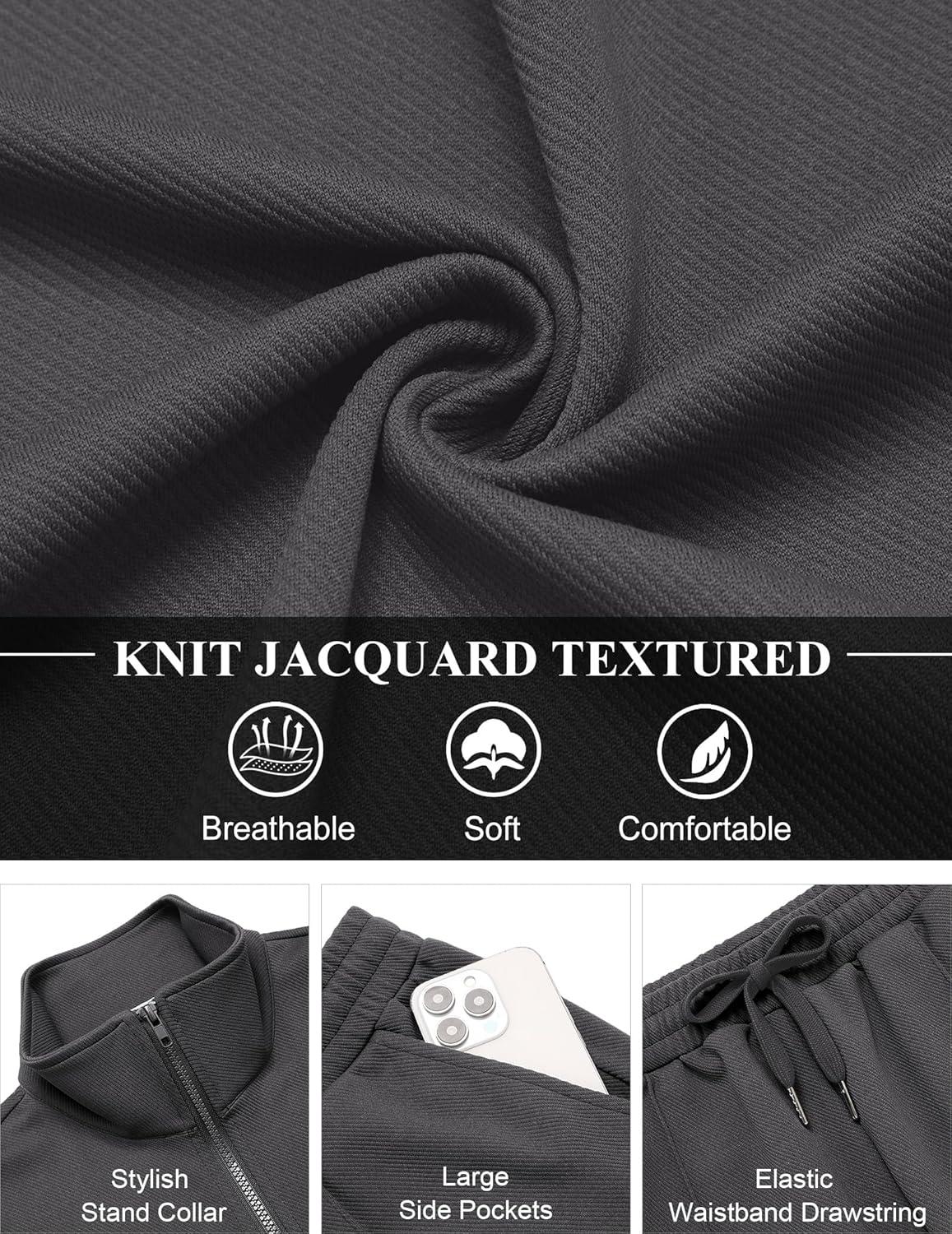 • COOFANDY Men’s Casual Sweatsuit 2 Piece Athletic Full Zip Tracksuit Jacquard Jogging Set Fashion Jackets And Pants Outfit(Dark Grey)
