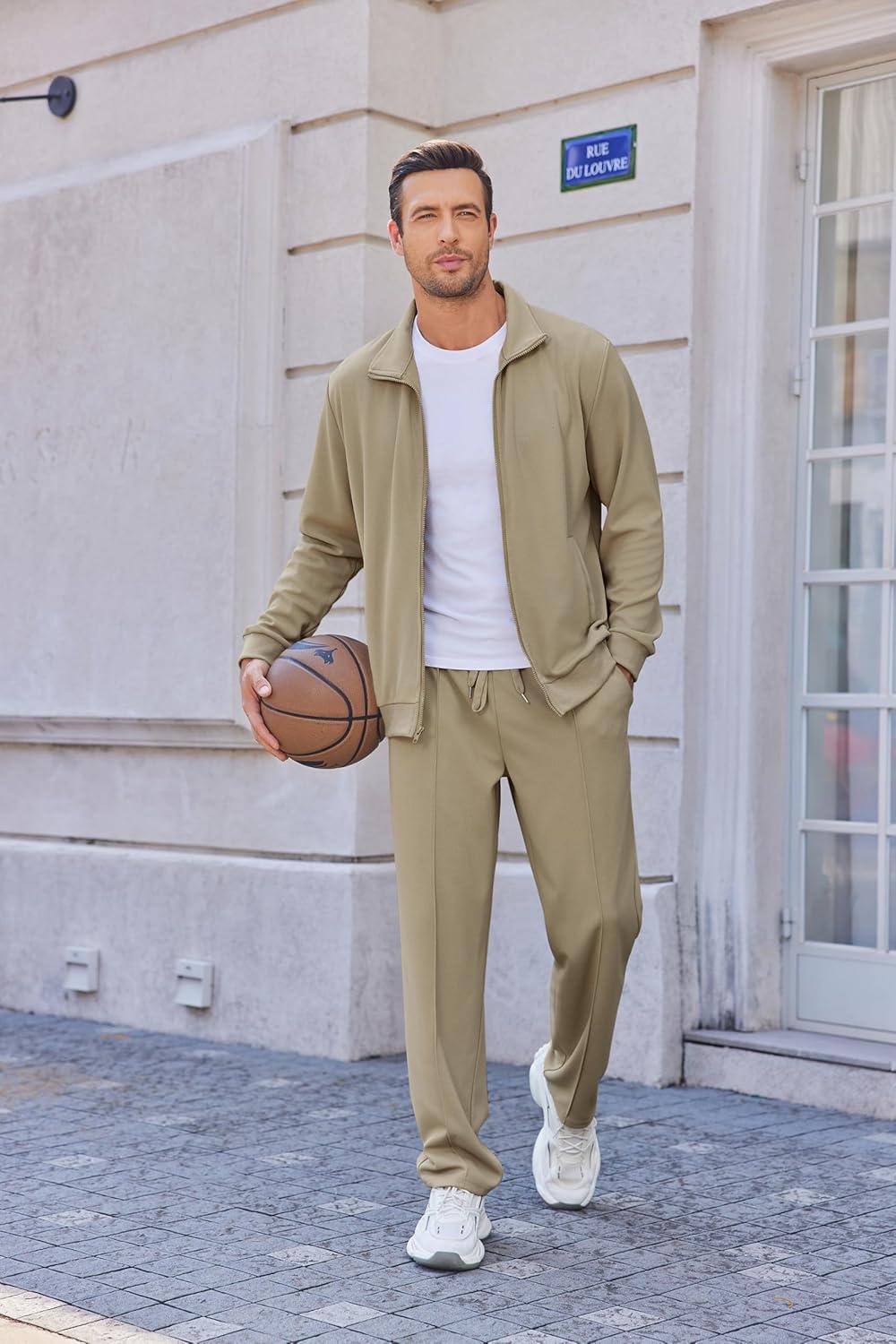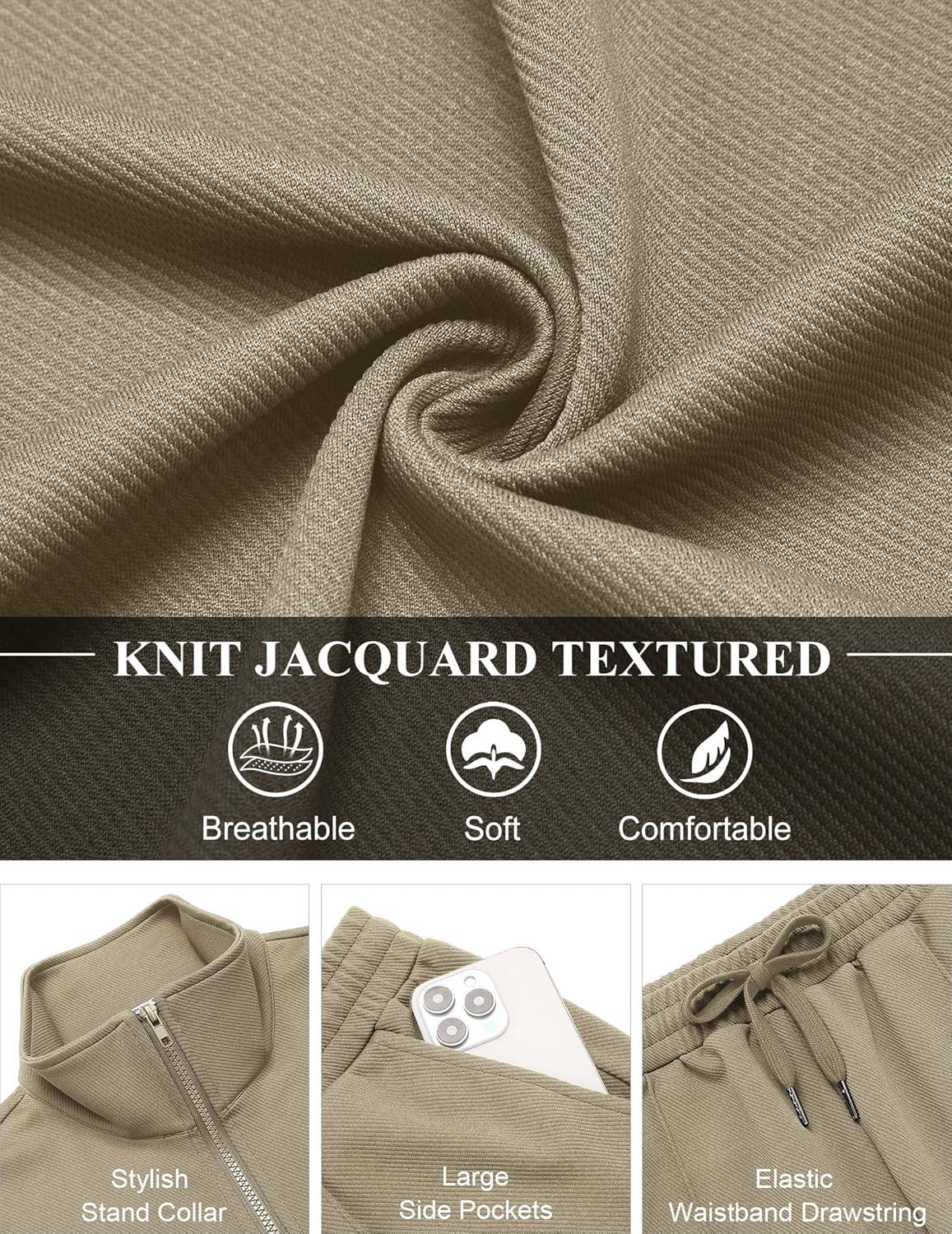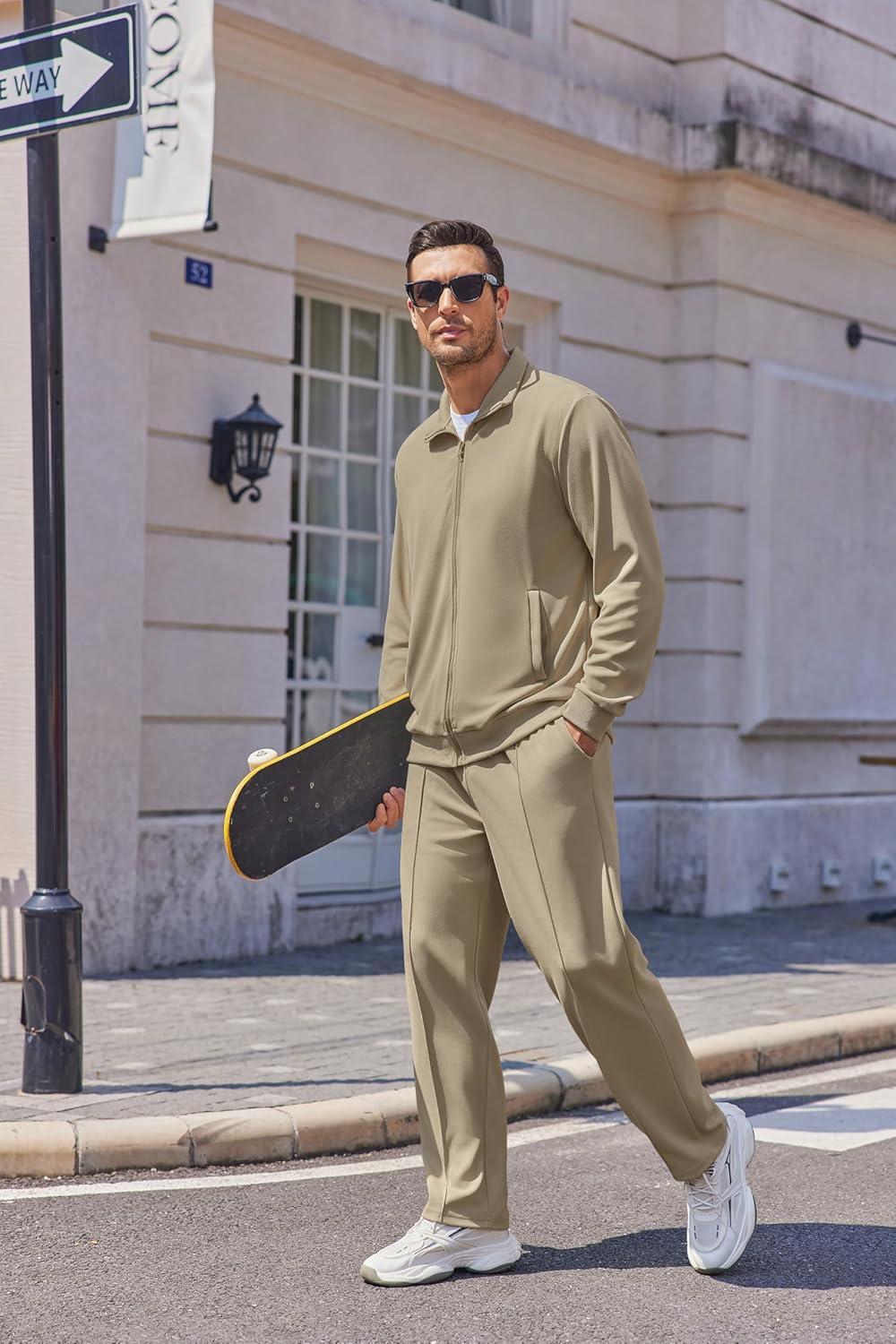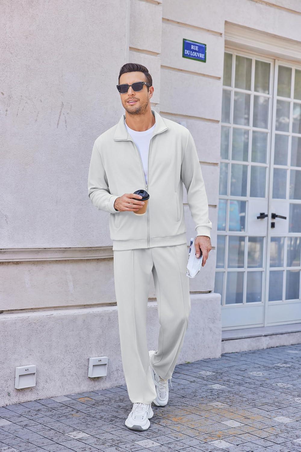 • COOFANDY Men’s Casual Sweatsuit 2 Piece Athletic Full Zip Tracksuit Jacquard Jogging Set Fashion Jackets And Pants Outfit(Dark Grey)