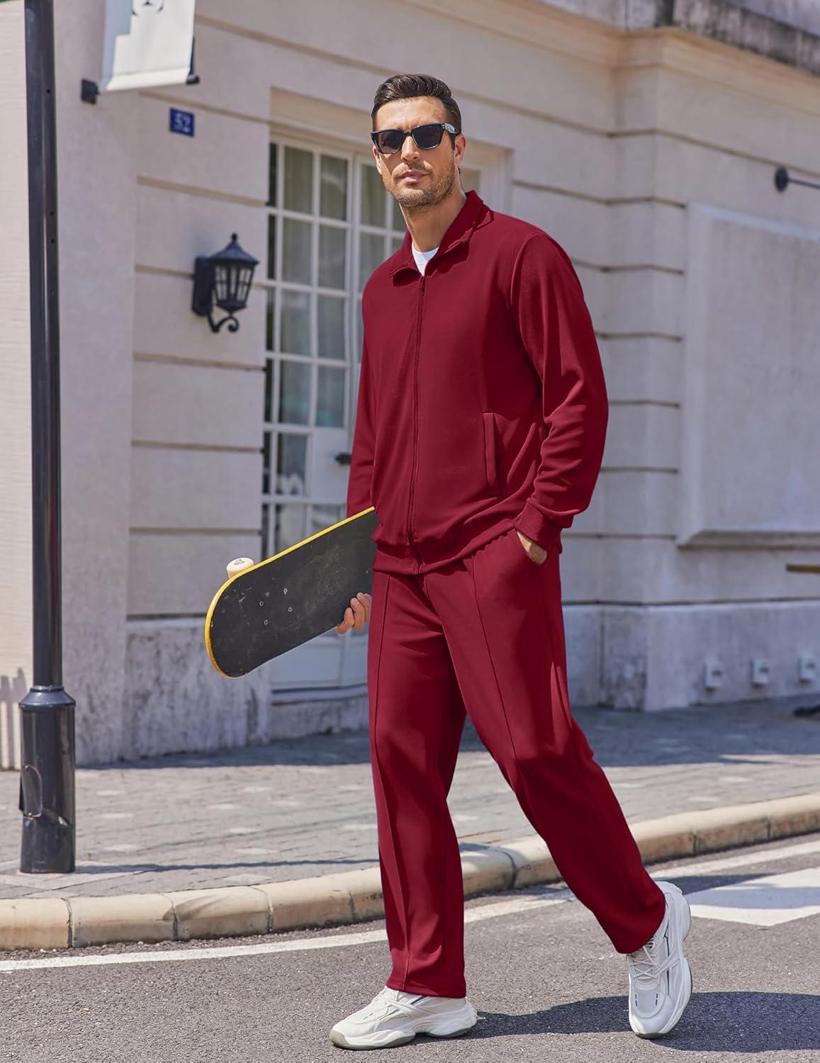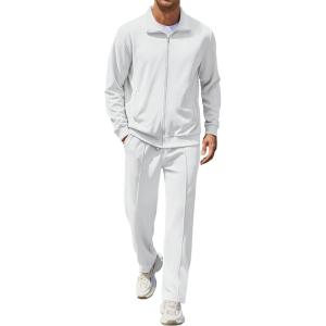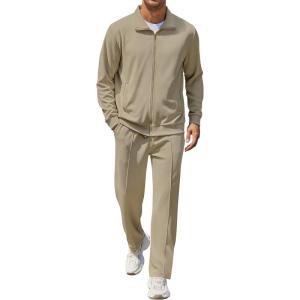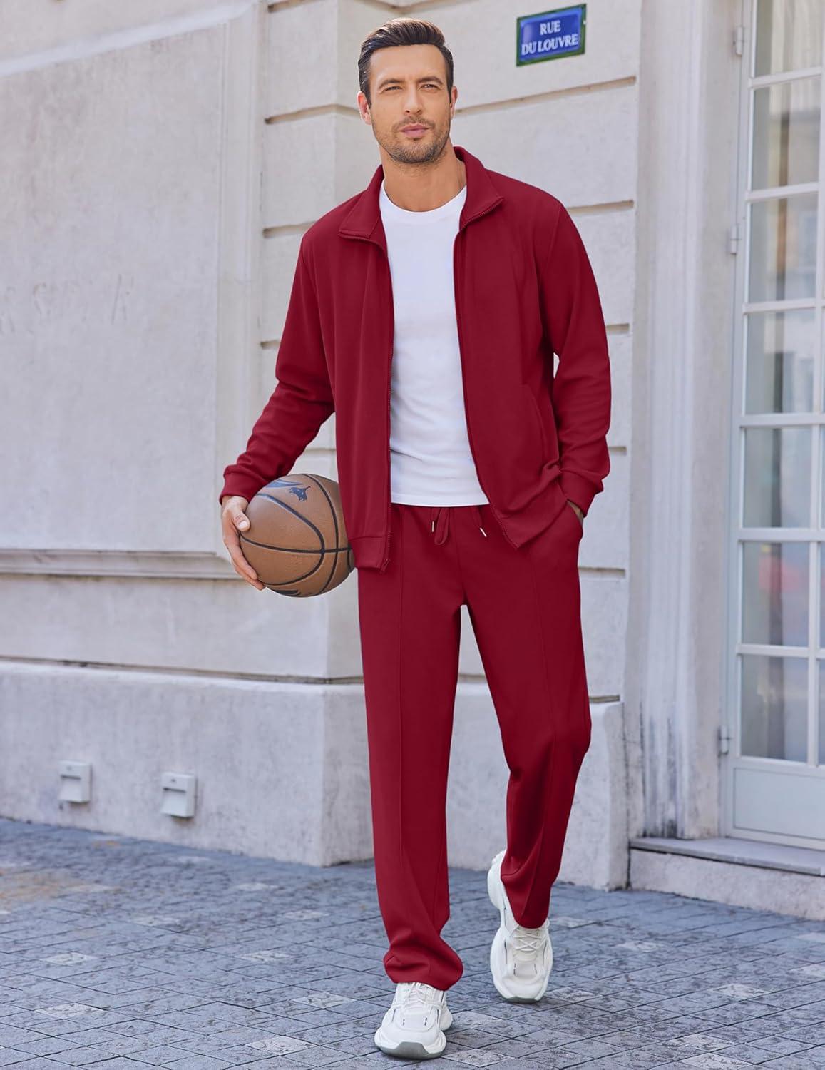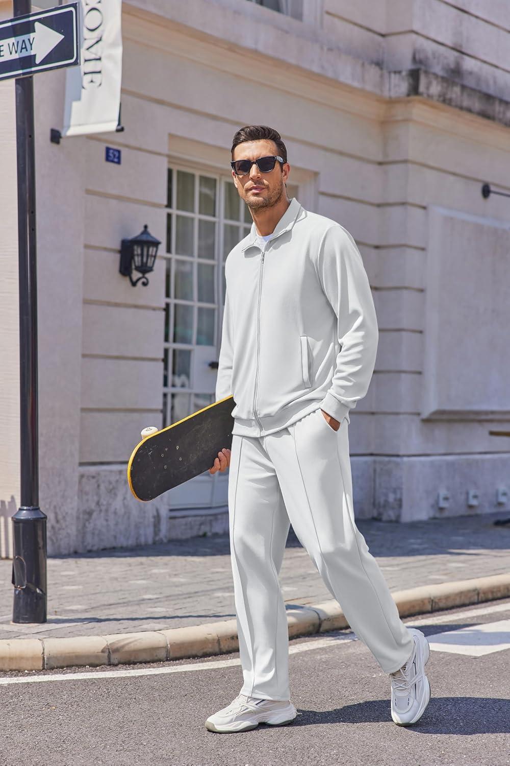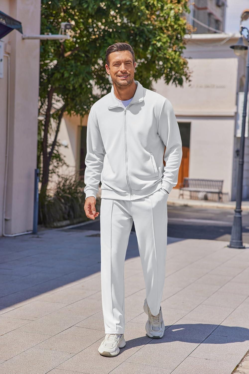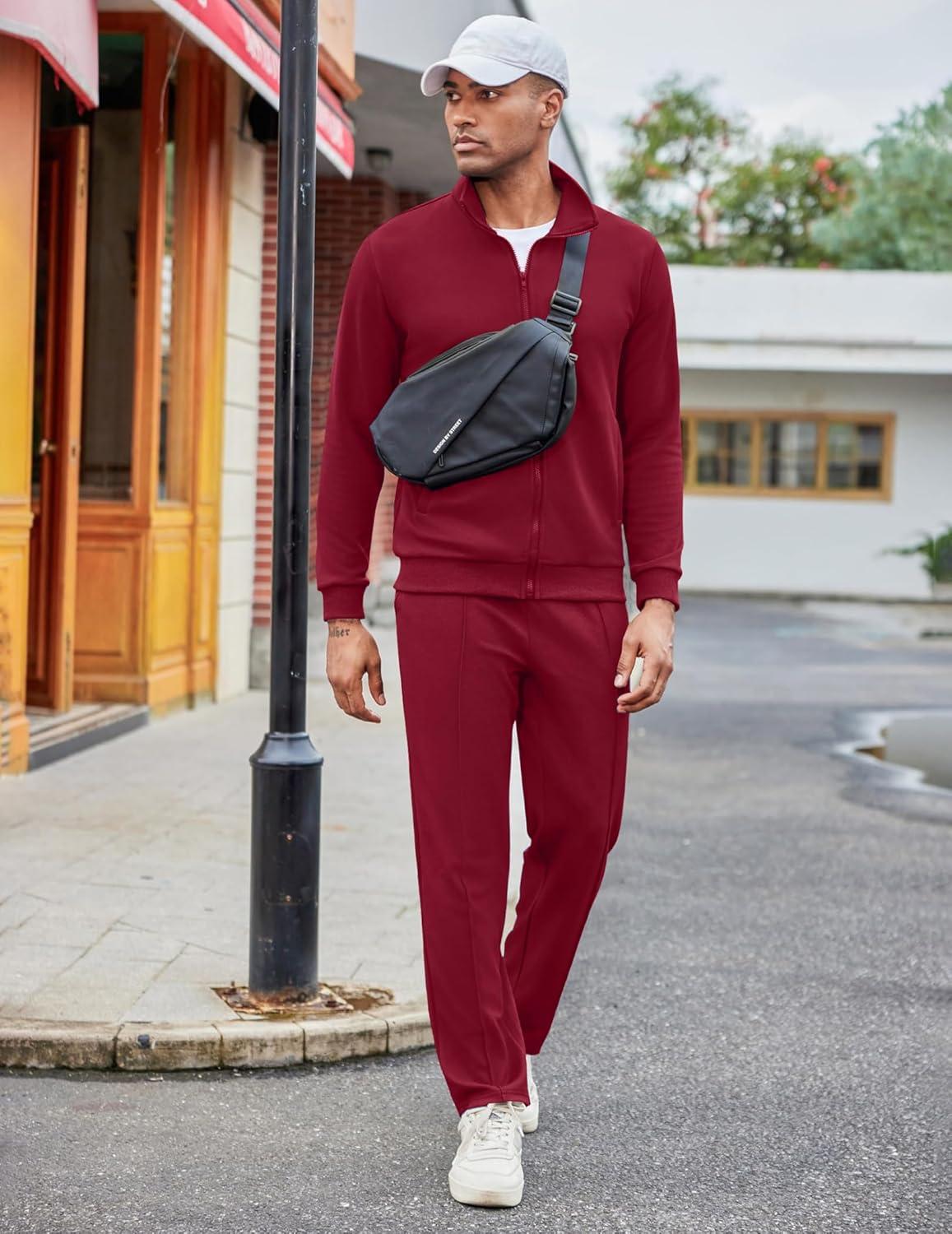 • COOFANDY Men’s Casual Sweatsuit 2 Piece Athletic Full Zip Tracksuit Jacquard Jogging Set Fashion Jackets And Pants Outfit(Dark Grey)