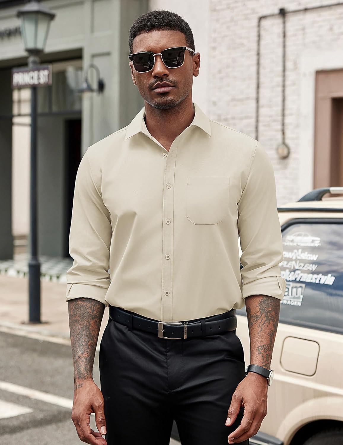 COOFANDY Men’s Cotton Cargo Pants Relaxed Fit Elastic Waist Casual Pants Stretch Work Cargo Pant with Pockets(Light Khaki)