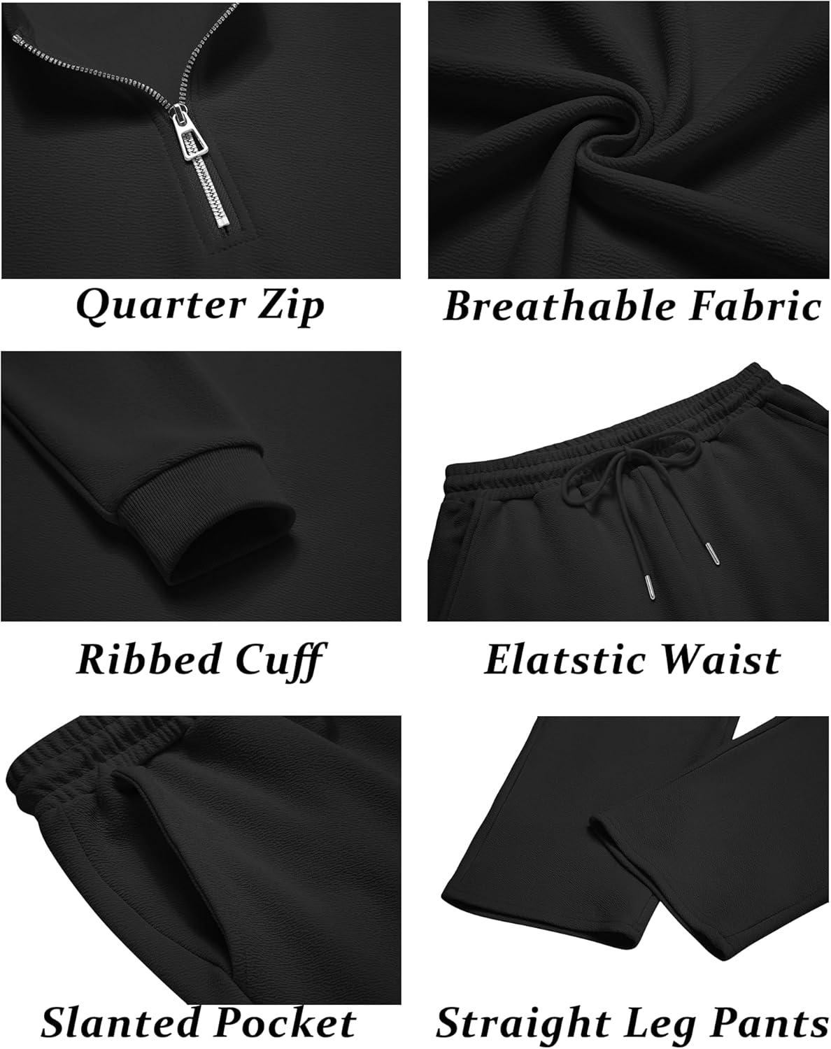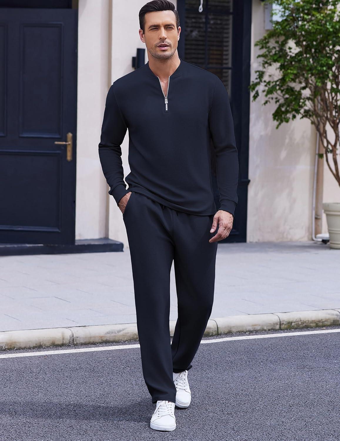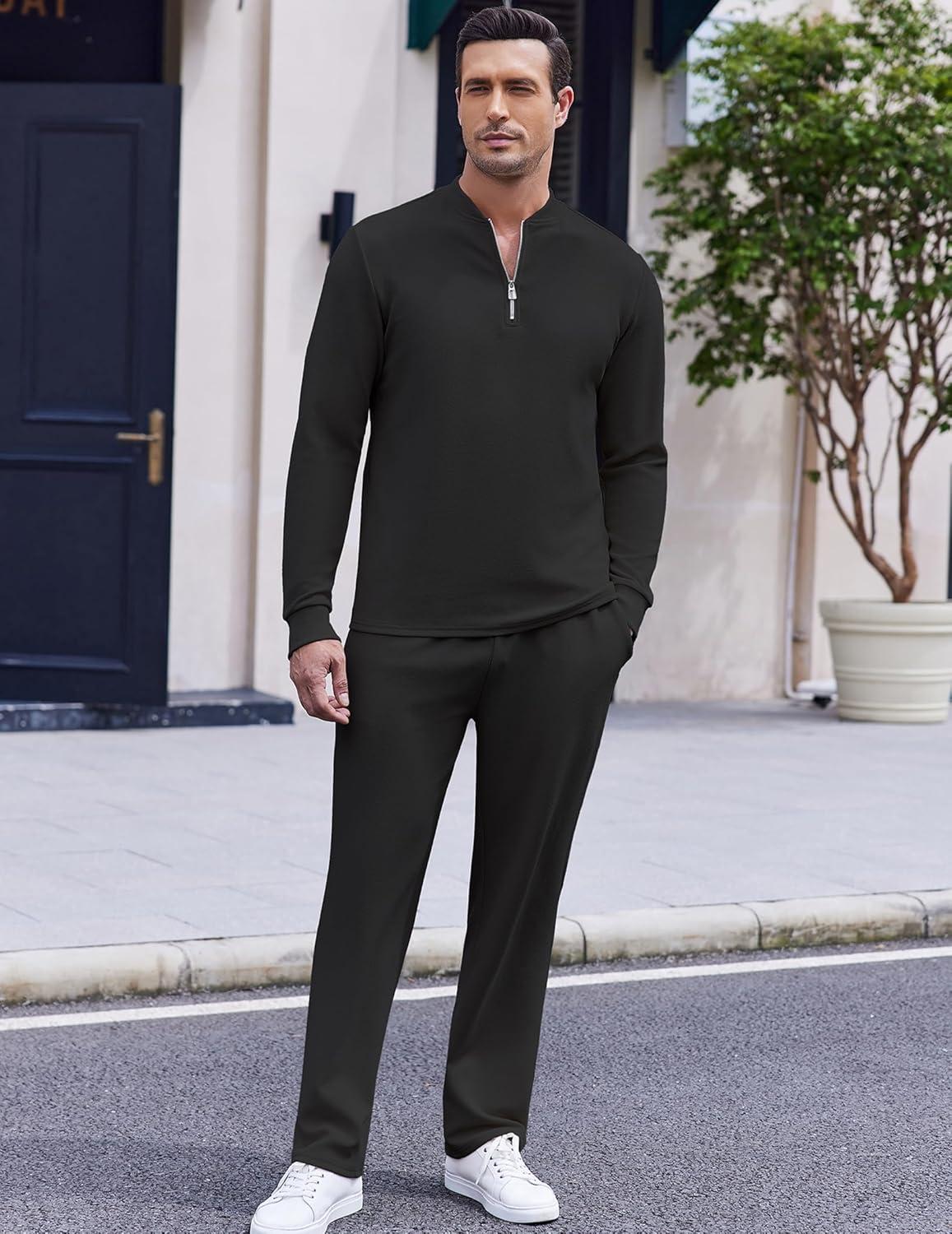 COOFANDY Men’s 2 Piece Tracksuit Set Polo Athletic Sweatsuit Quarter Zip Jogging Long Sleeve Casual Sports Outfits(All Black)