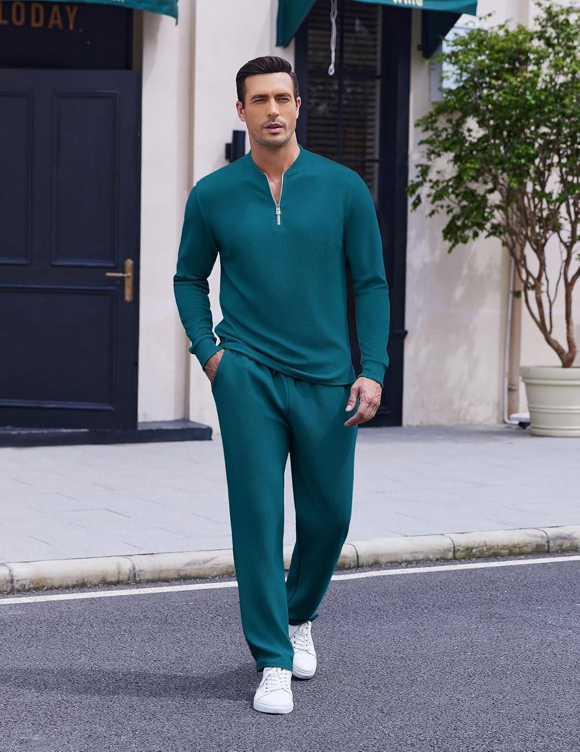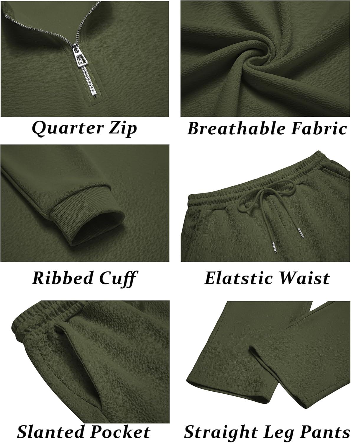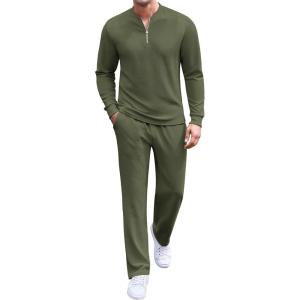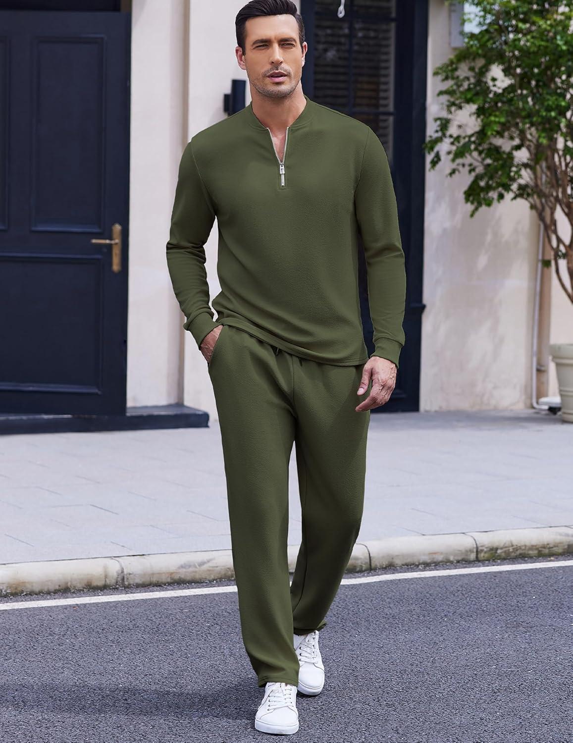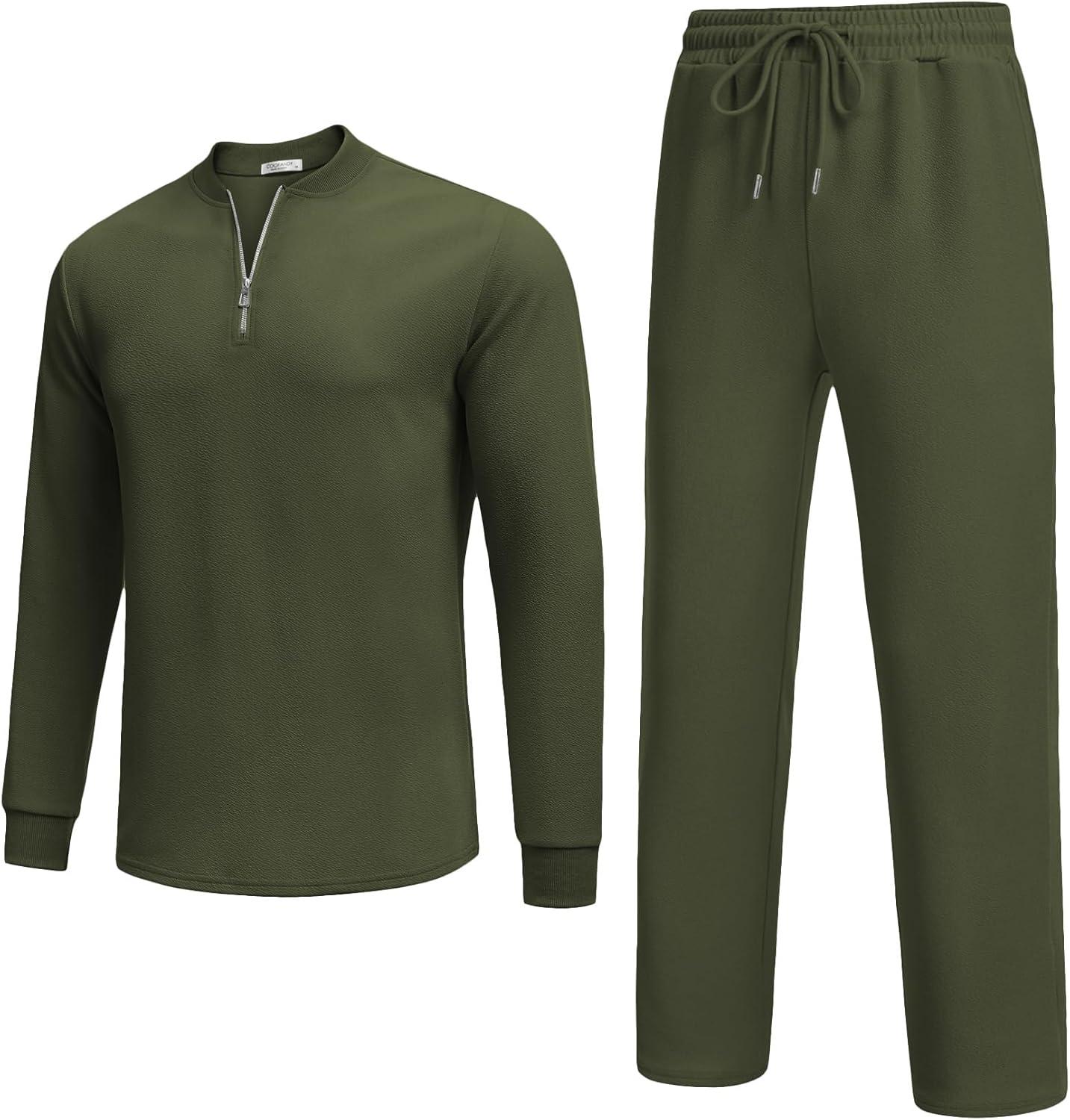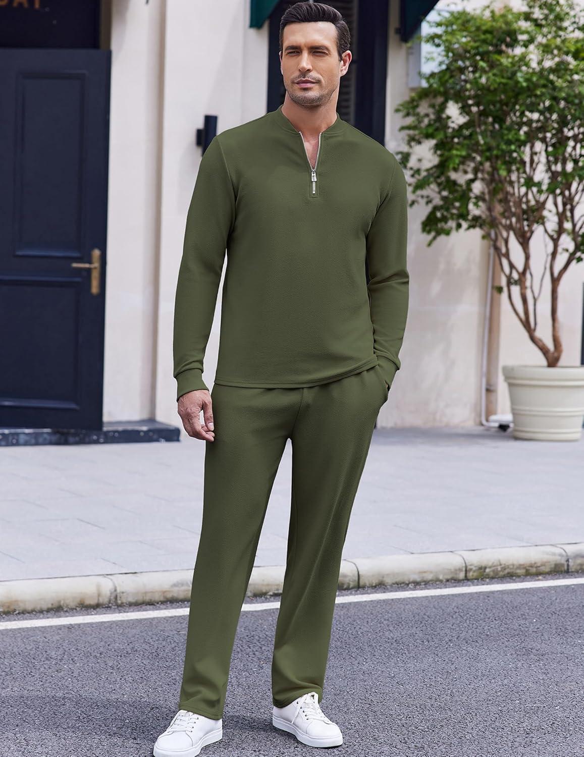 COOFANDY Men’s 2 Piece Tracksuit Set Polo Athletic Sweatsuit Quarter Zip Jogging Long Sleeve Casual Sports Outfits(Army Green)