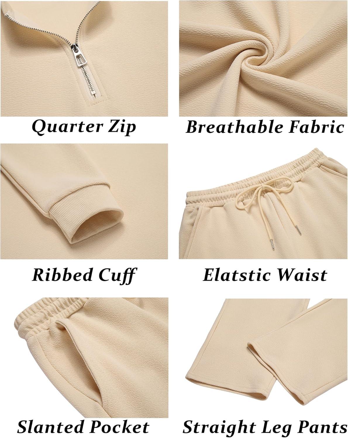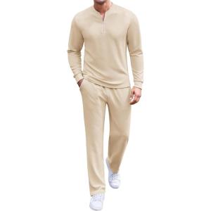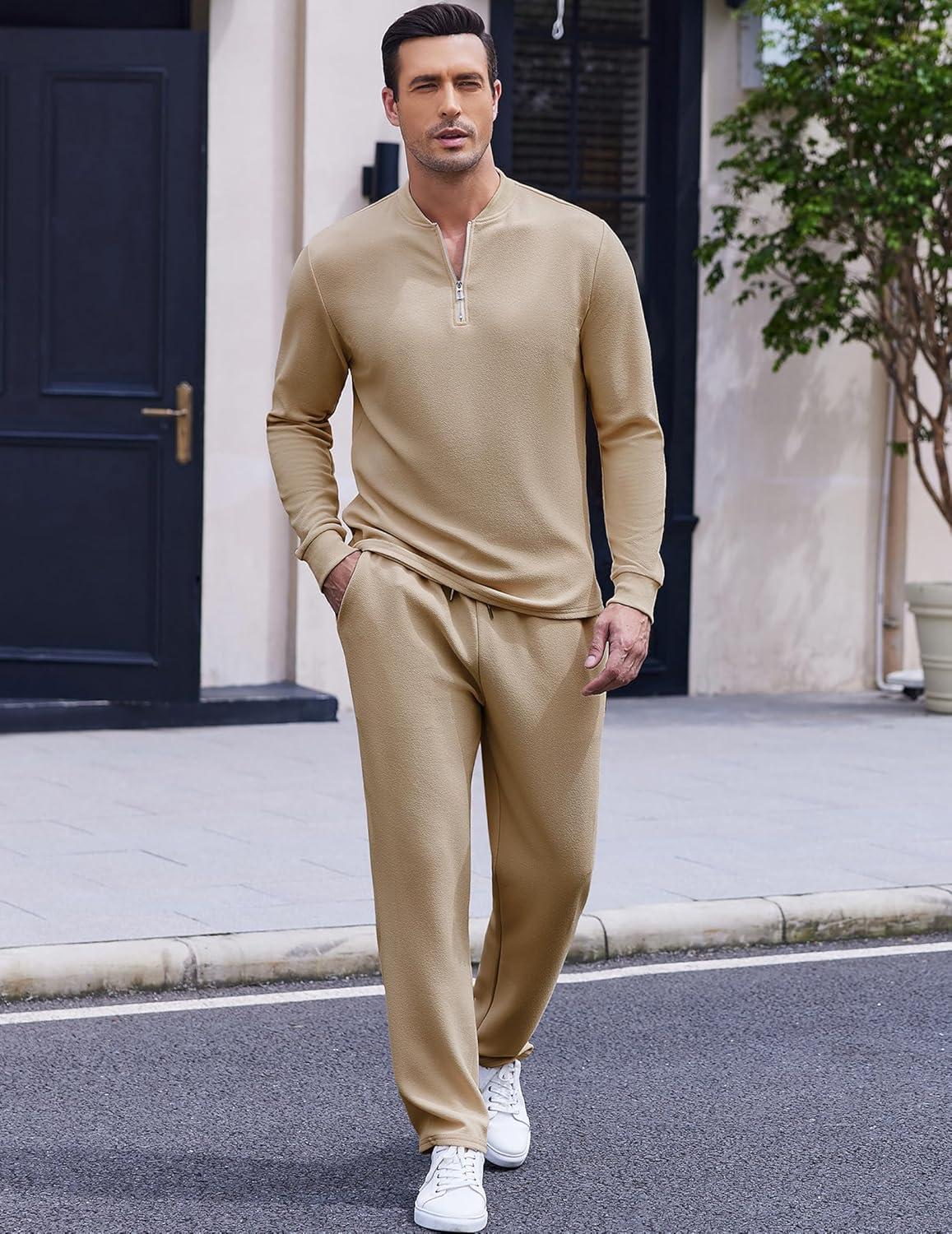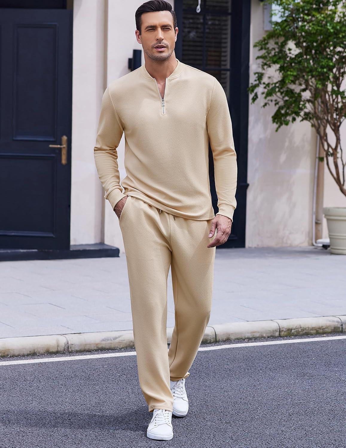 COOFANDY Men’s 2 Piece Tracksuit Set Polo Athletic Sweatsuit Quarter Zip Jogging Long Sleeve Casual Sports Outfits(Beige)