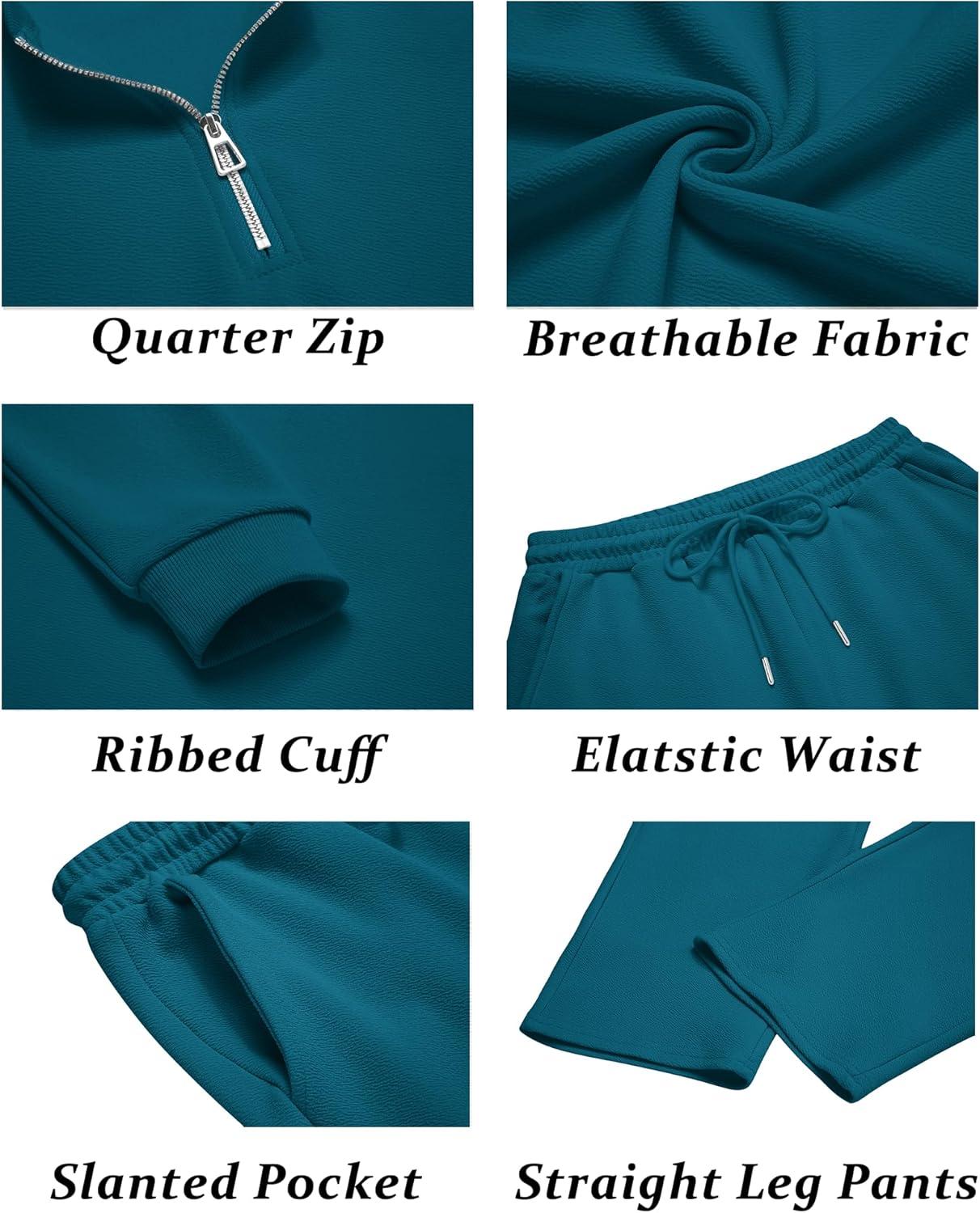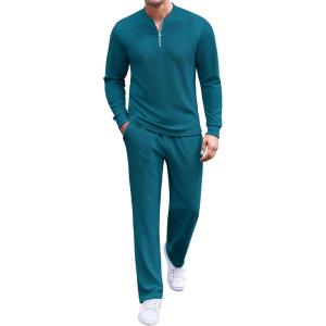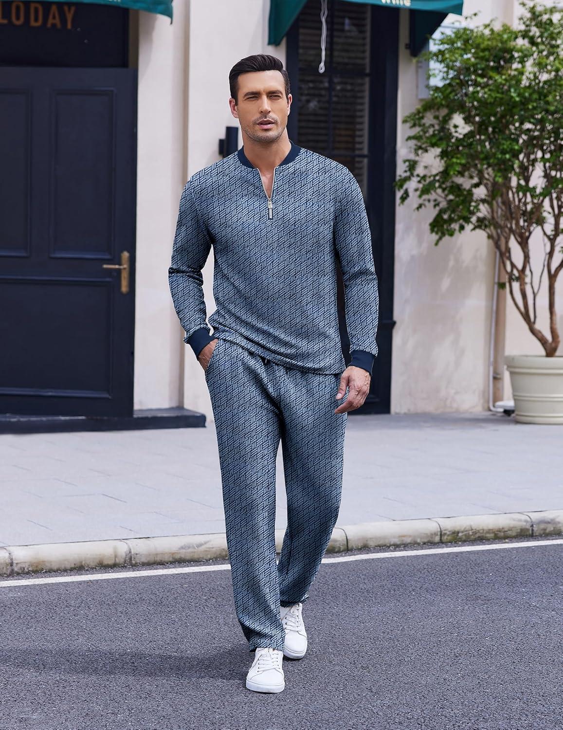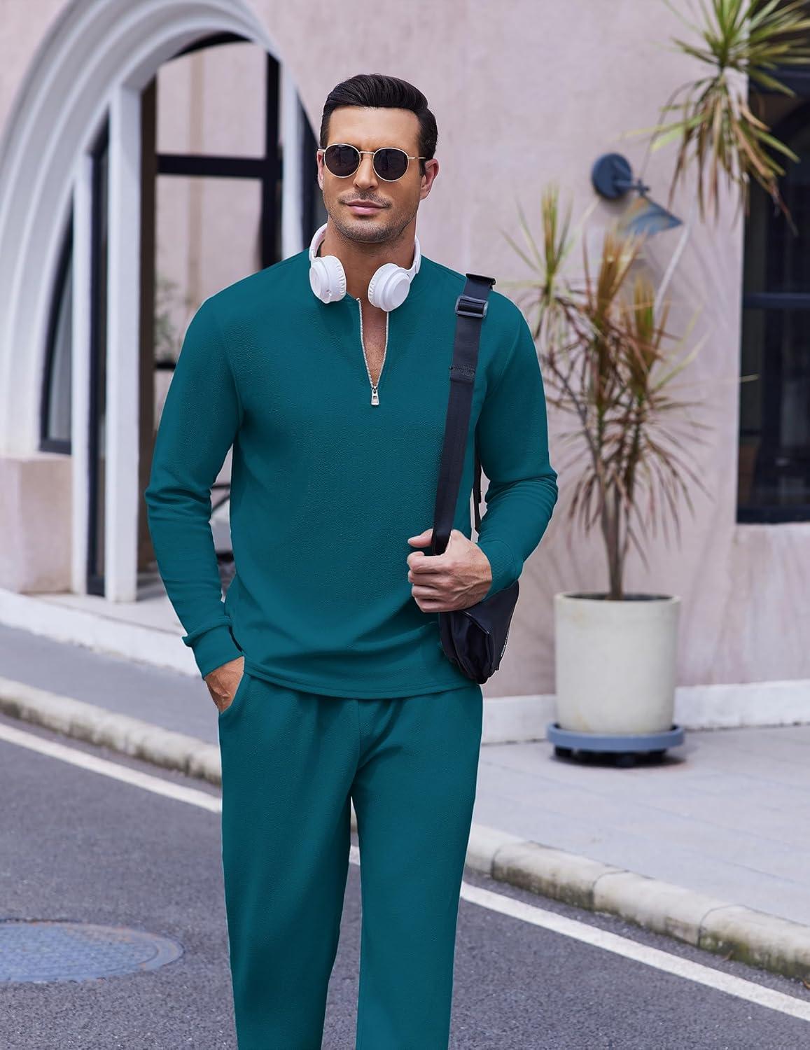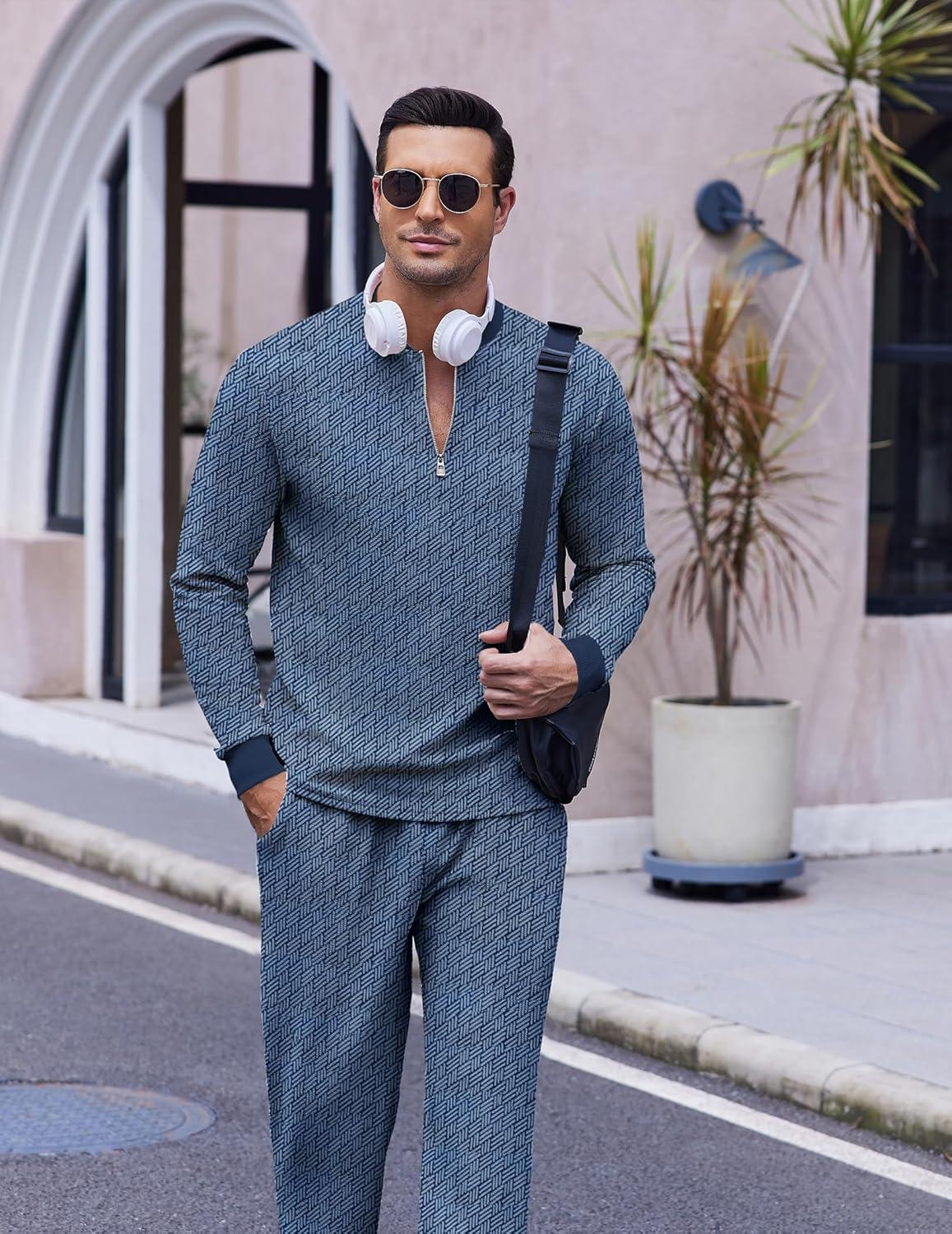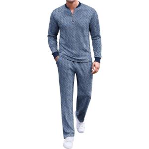 COOFANDY Men’s 2 Piece Tracksuit Set Polo Athletic Sweatsuit Quarter Zip Jogging Long Sleeve Casual Sports Outfits(Denim Blue)