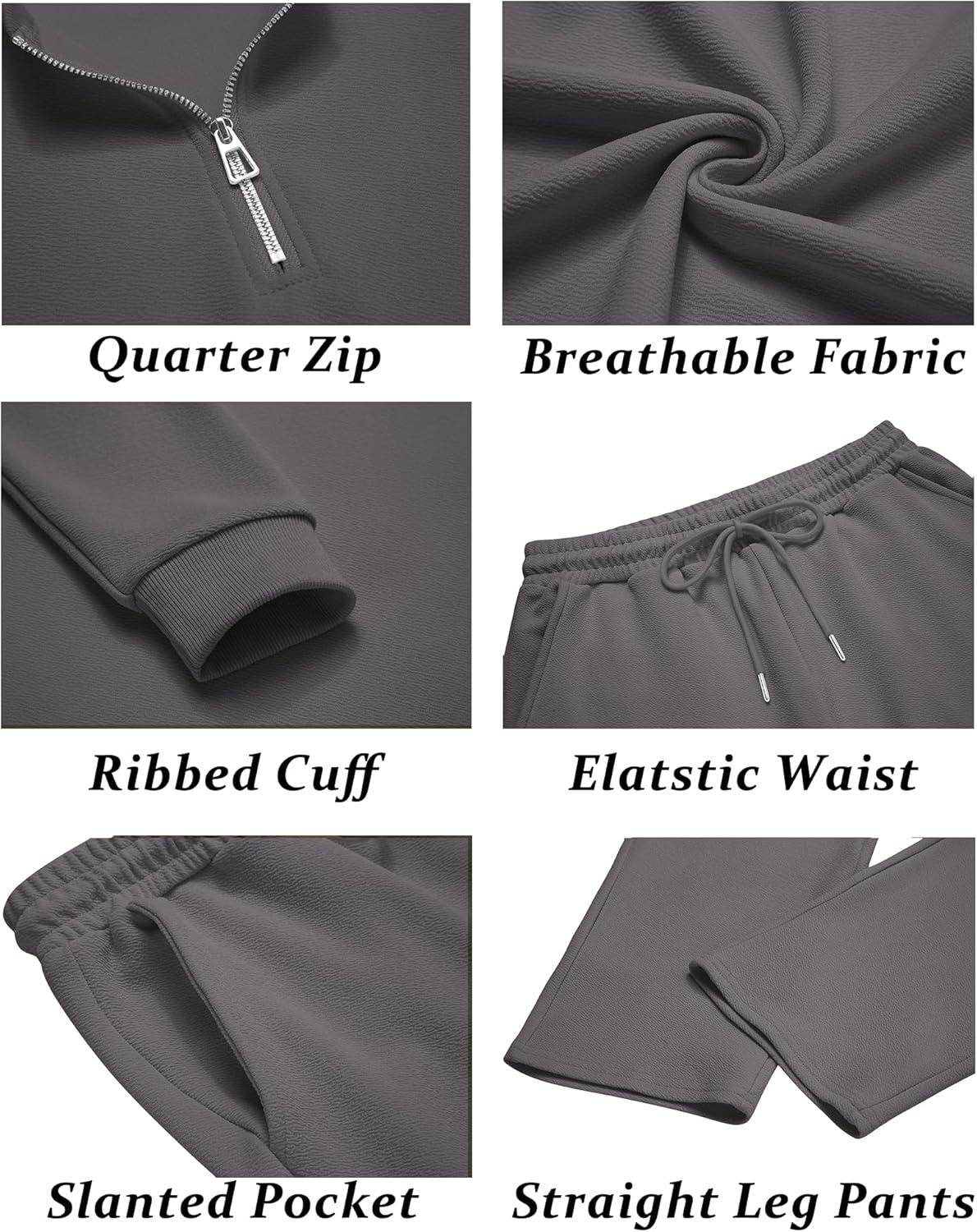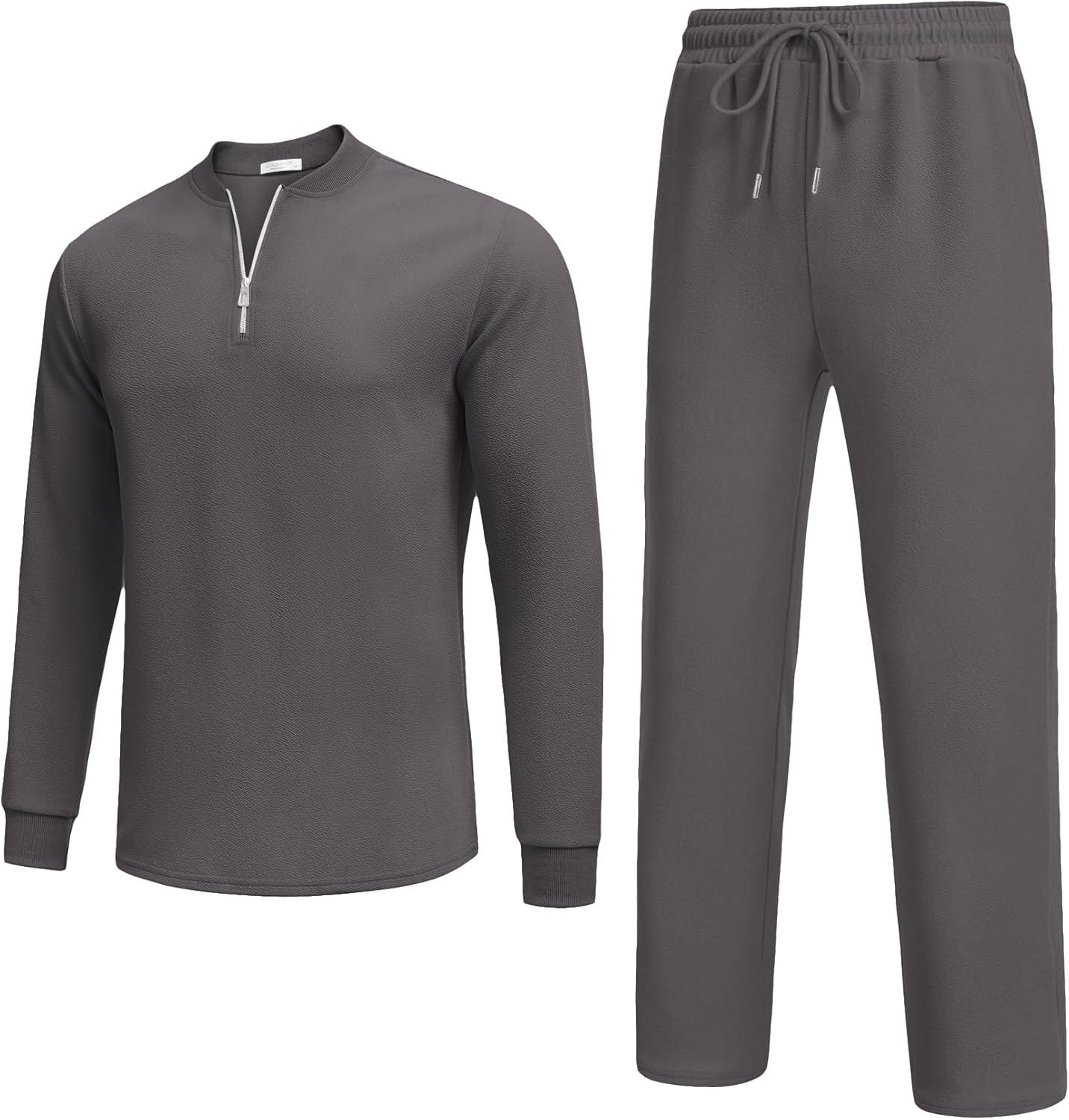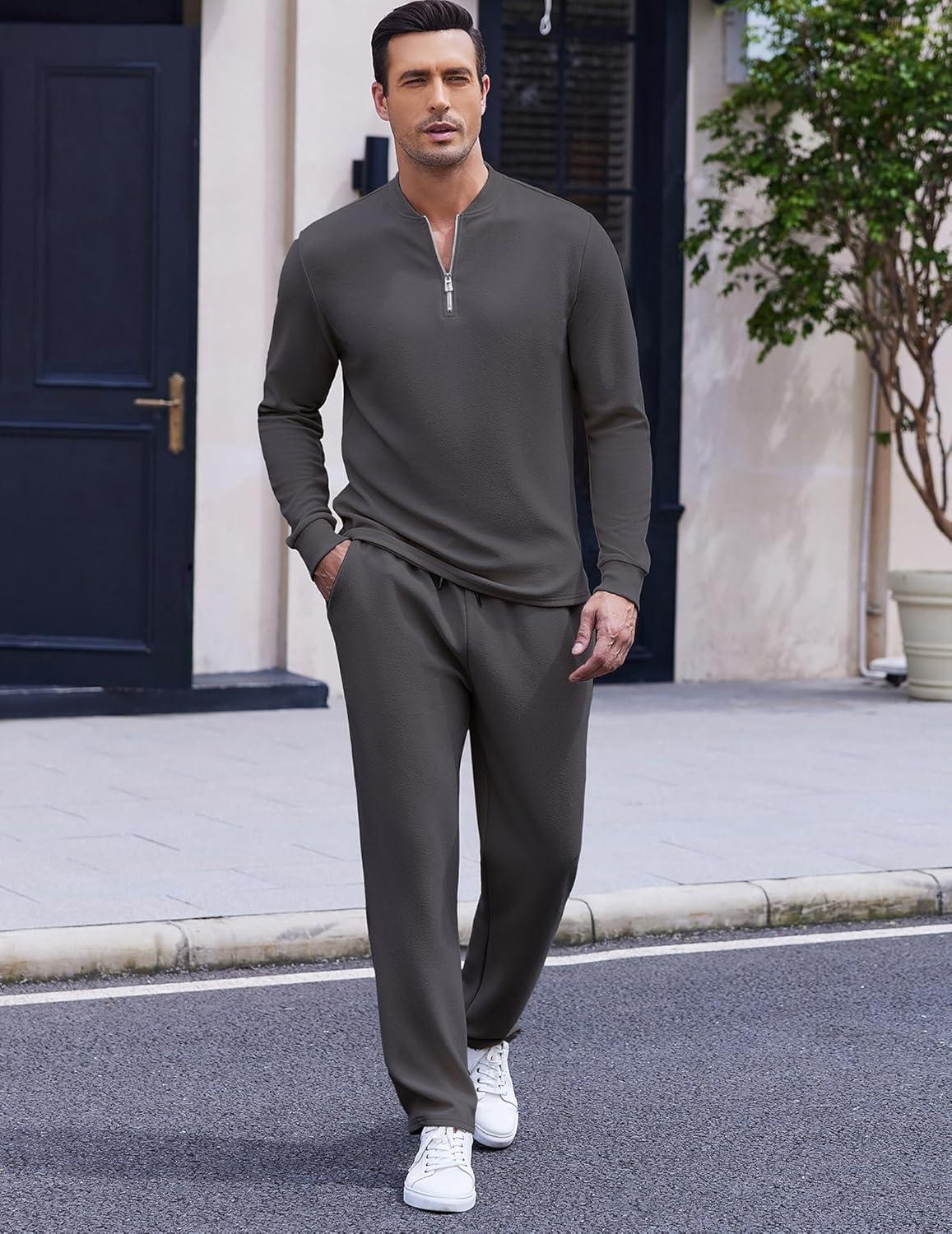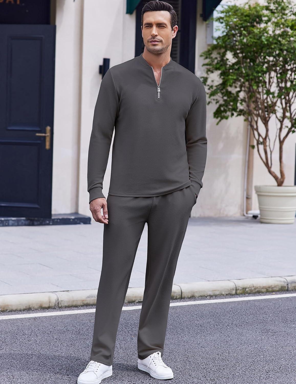 COOFANDY Men’s 2 Piece Tracksuit Set Polo Athletic Sweatsuit Quarter Zip Jogging Long Sleeve Casual Sports Outfits(Dark Grey)