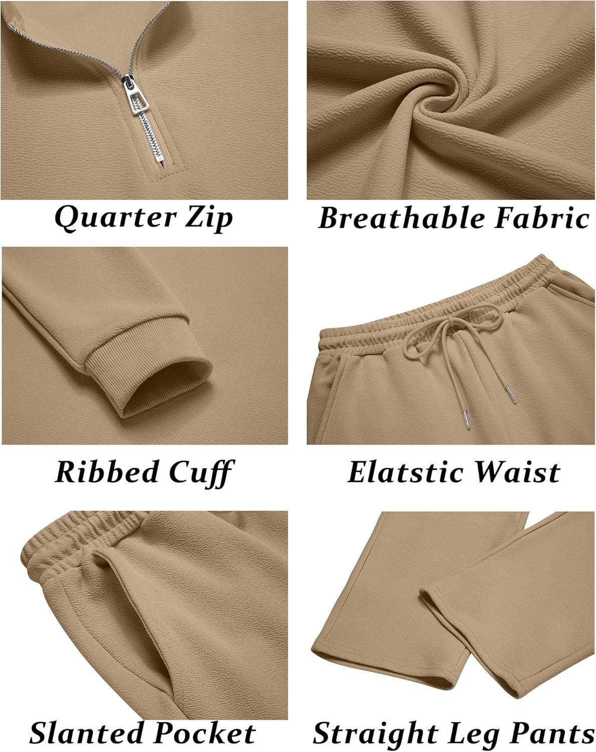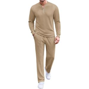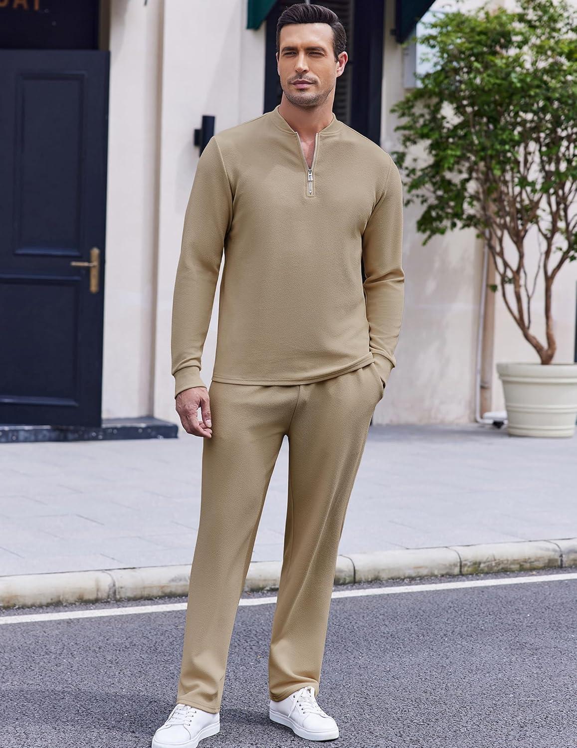 COOFANDY Men’s 2 Piece Tracksuit Set Polo Athletic Sweatsuit Quarter Zip Jogging Long Sleeve Casual Sports Outfits(Khaki)