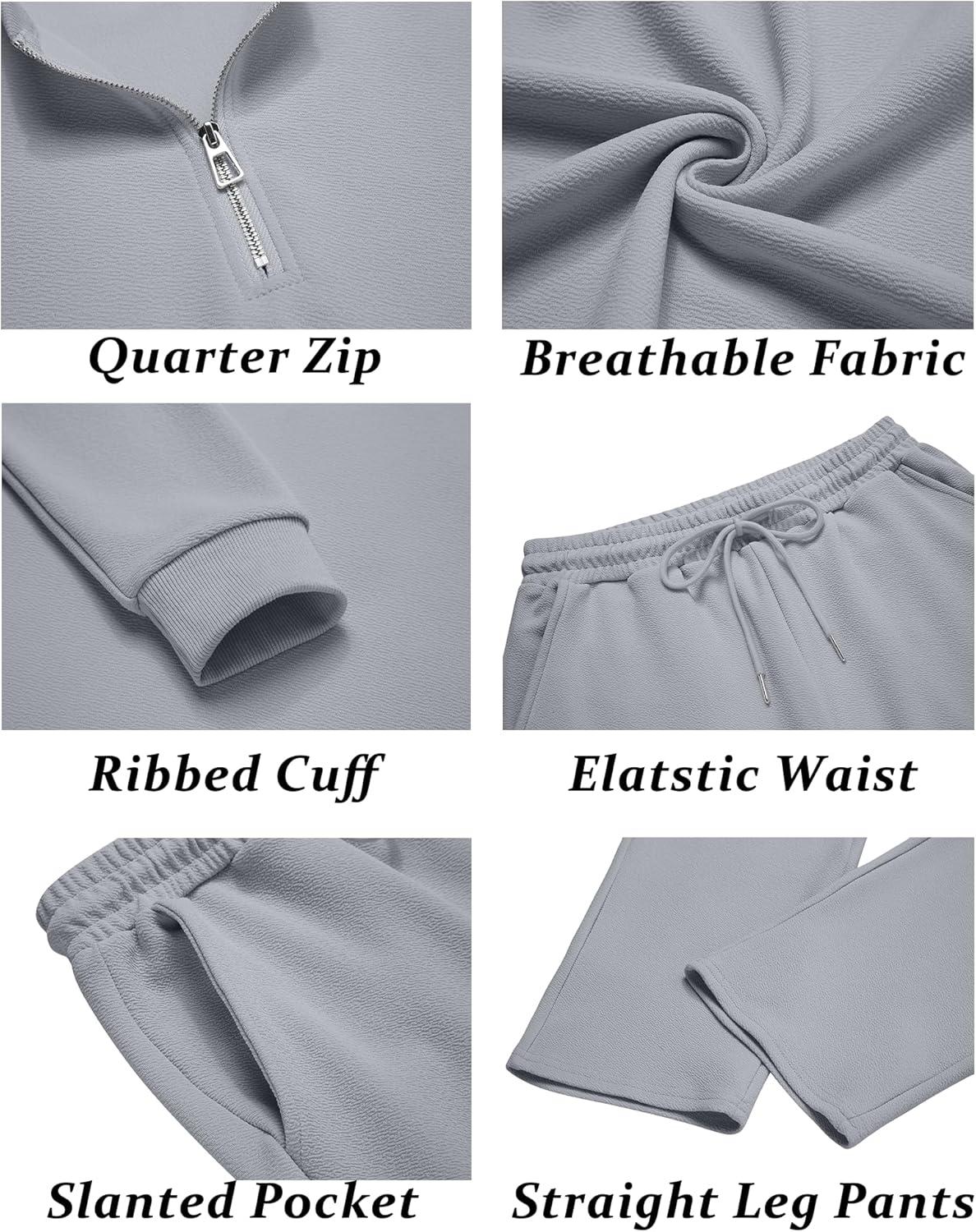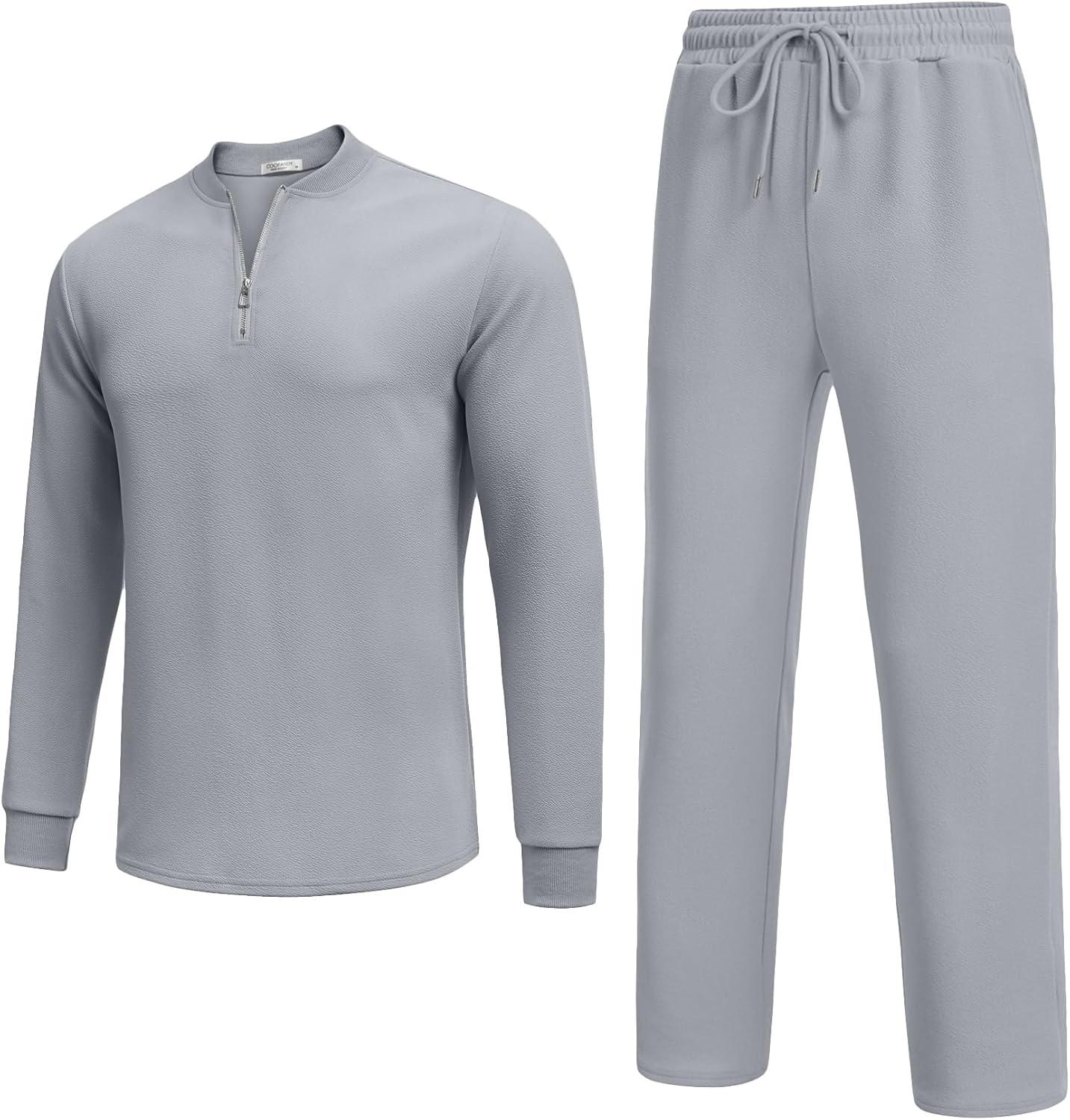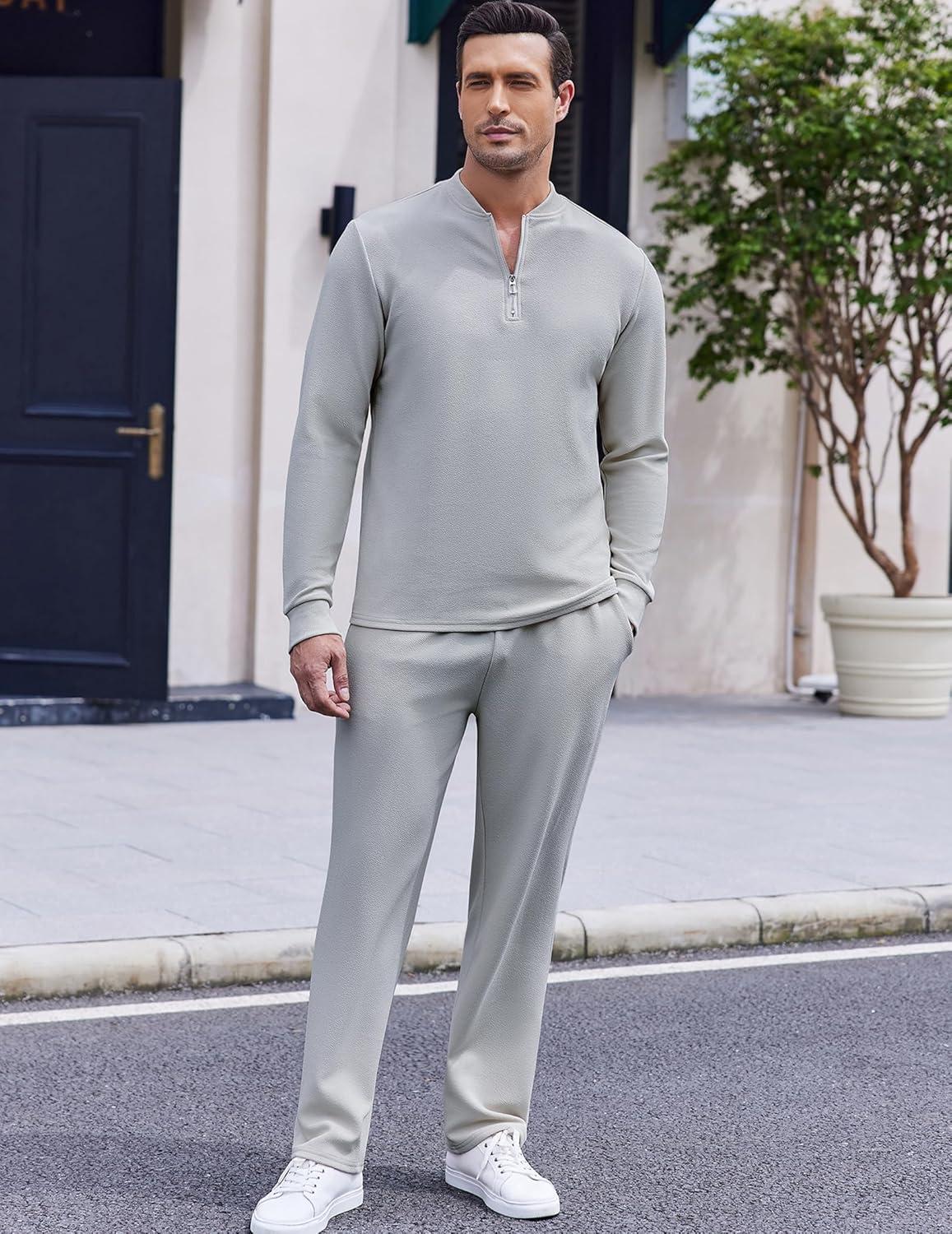 COOFANDY Men’s 2 Piece Tracksuit Set Polo Athletic Sweatsuit Quarter Zip Jogging Long Sleeve Casual Sports Outfits(Light Grey)