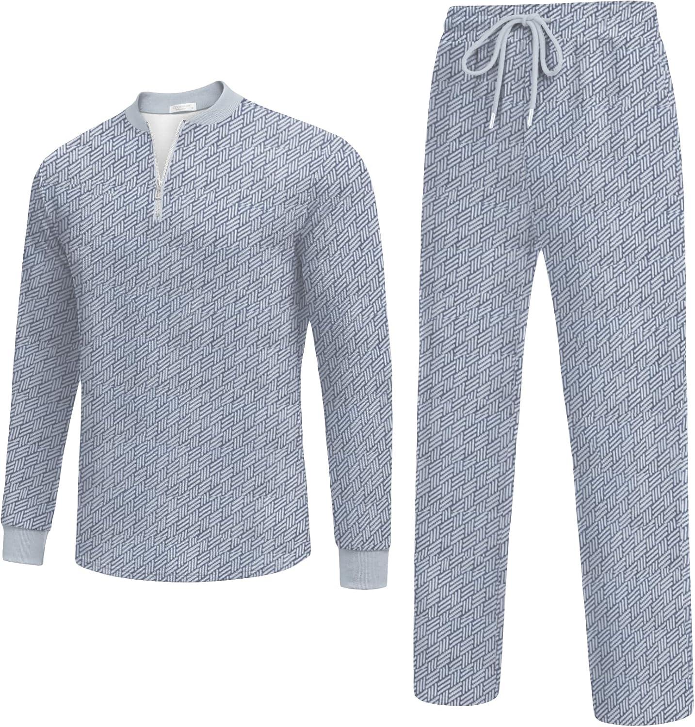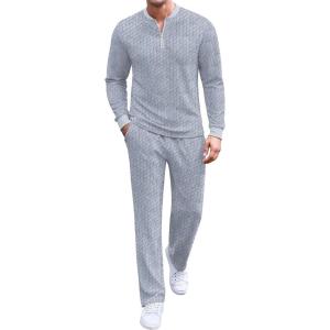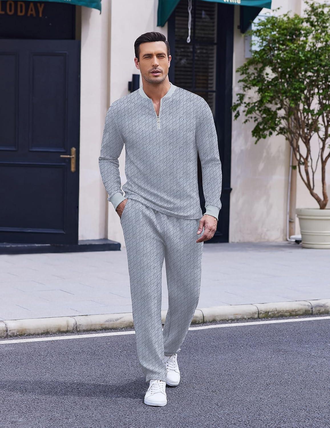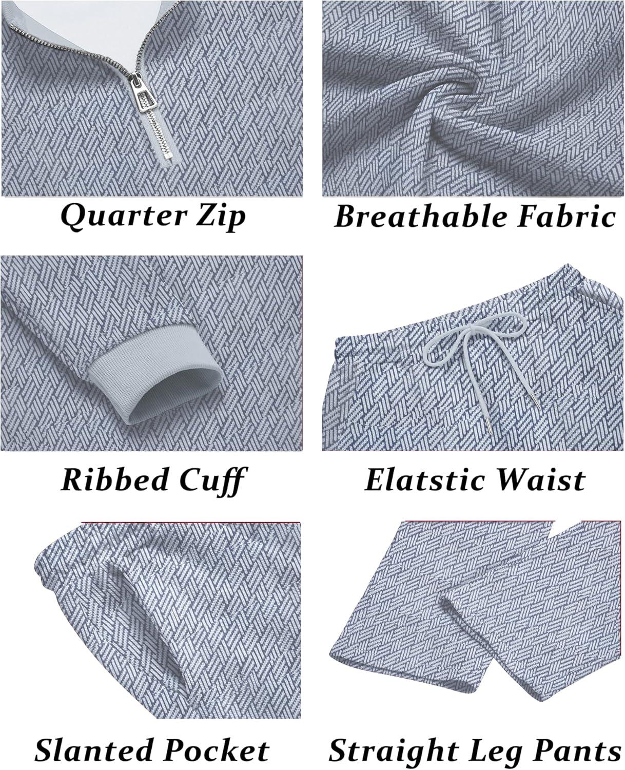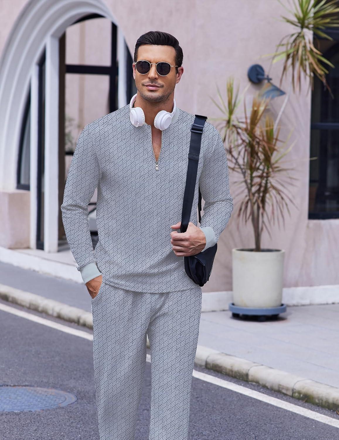 COOFANDY Men’s 2 Piece Tracksuit Set Polo Athletic Sweatsuit Quarter Zip Jogging Long Sleeve Casual Sports Outfits(Light Grey Jacquard)