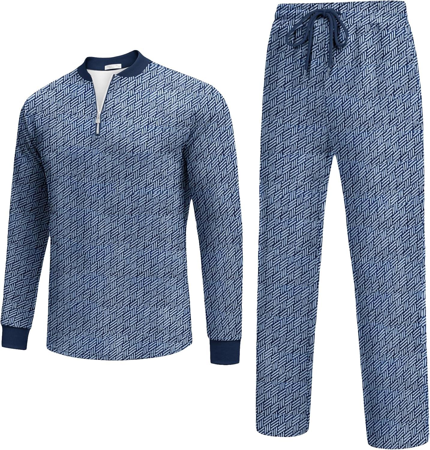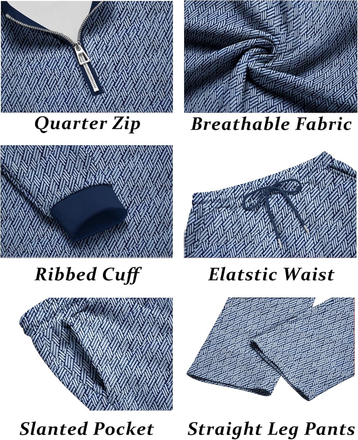 COOFANDY Men’s 2 Piece Tracksuit Set Polo Athletic Sweatsuit Quarter Zip Jogging Long Sleeve Casual Sports Outfits(Navy Blue Jacquard)