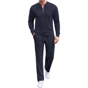 COOFANDY Men’s 2 Piece Tracksuit Set Polo Athletic Sweatsuit Quarter Zip Jogging Long Sleeve Casual Sports Outfits(Navy Blue)