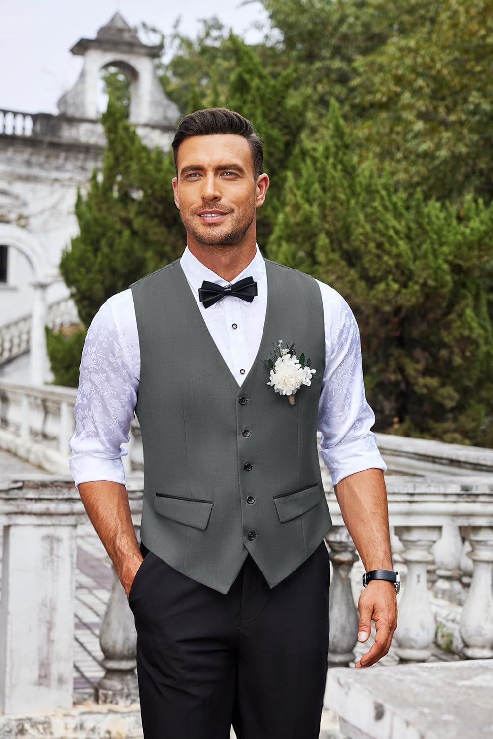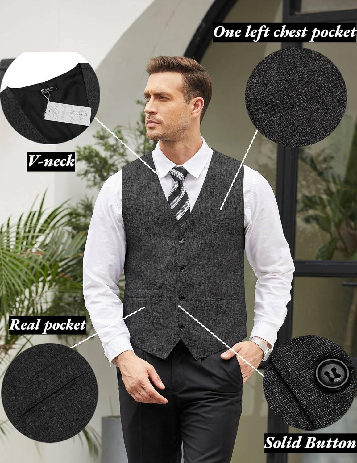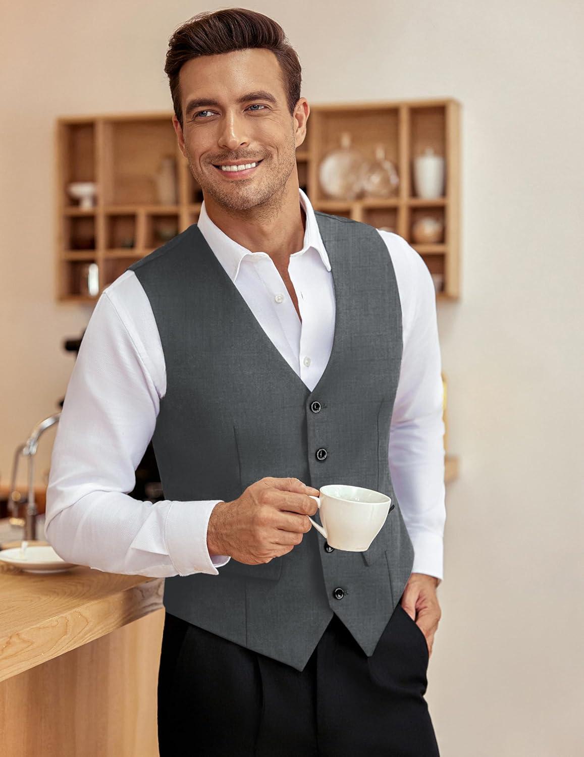 COOFANDY Men’s Casual Business Vests Lightweight Waistcoat Slim Fit Suit Vest(Dark Gray)