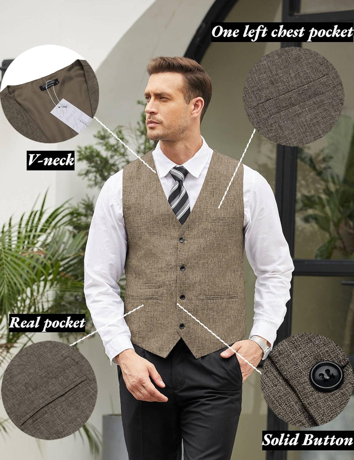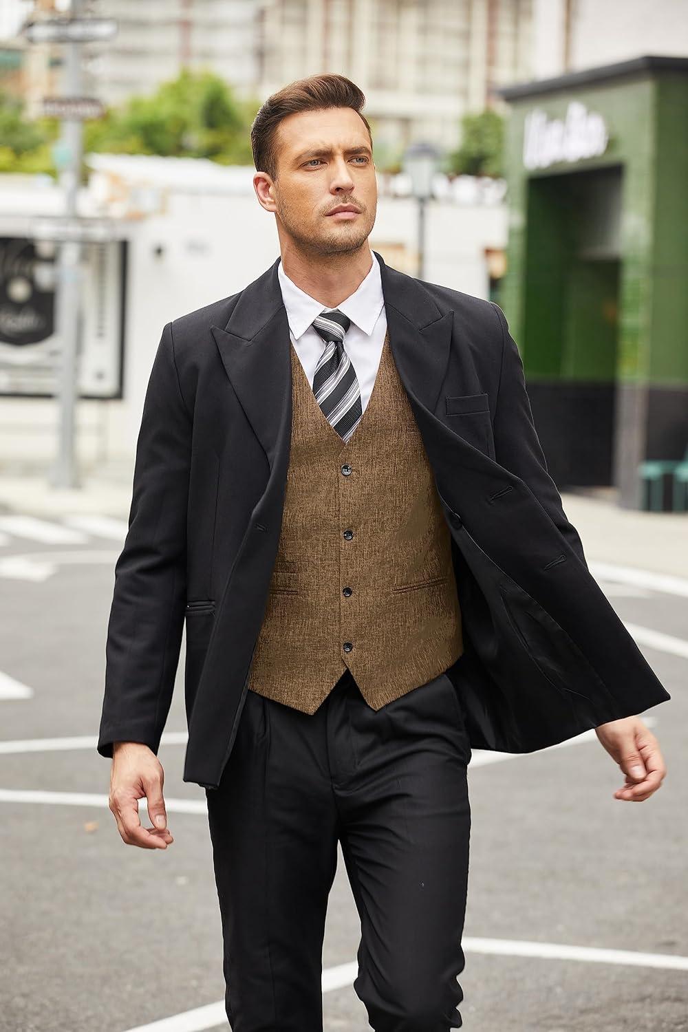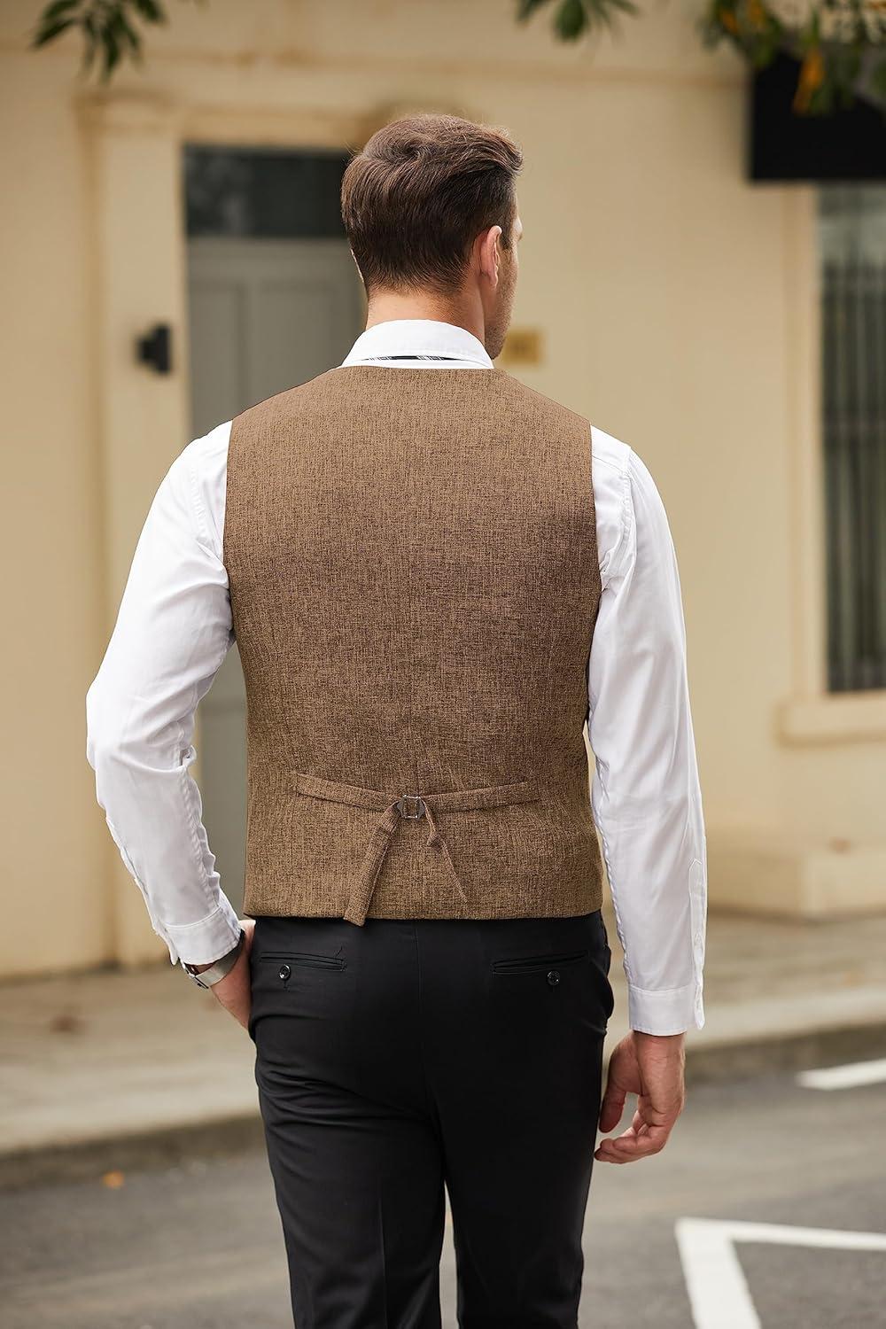 COOFANDY Men’s Casual Business Vests Lightweight Waistcoat Slim Fit Suit Vest(Brown)