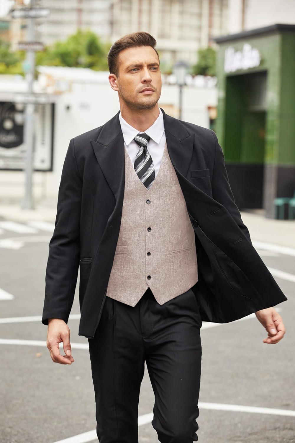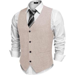 COOFANDY Men’s Casual Business Vests Lightweight Waistcoat Slim Fit Suit Vest(Light Khaki)