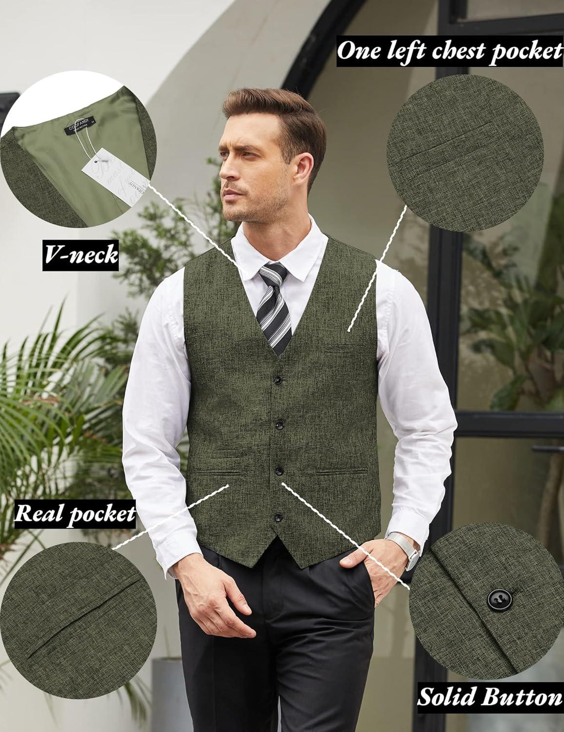 COOFANDY Men’s Casual Business Vests Lightweight Waistcoat Slim Fit Suit Vest(Green)