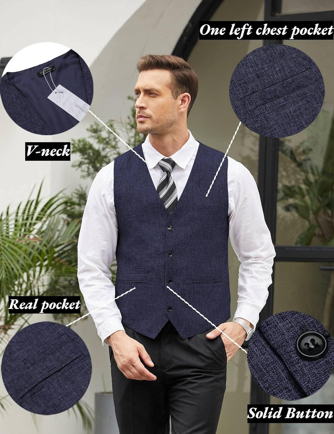 COOFANDY Men’s Casual Business Vests Lightweight Waistcoat Slim Fit Suit Vest(Navy Blue)