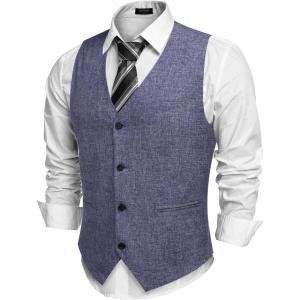 COOFANDY Men’s Casual Business Vests Lightweight Waistcoat Slim Fit Suit Vest(Blue)