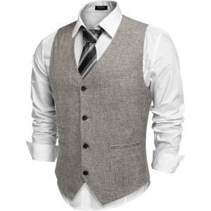 COOFANDY Men’s Casual Business Vests Lightweight Waistcoat Slim Fit Suit Vest(Grey)